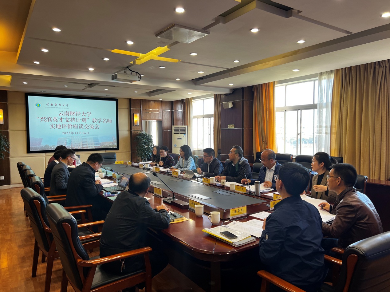 在实地评价期间,专家组同时对william王荣党、叶琼伟、段云龙3位“兴滇英才支持计划”教学名师进行了评价考察工作。专家组结合评价指标,查阅教学名师原始材料、随堂听课,并与教学名师教学团队成员及学生代表座谈对象开展座谈。座谈主要围绕中青年教师成长、相关项目支持经费管理及使用、课堂教学方式、就业和考研帮扶等内容与师生代表进行交流。