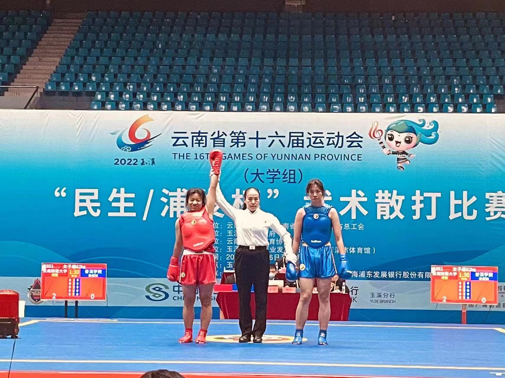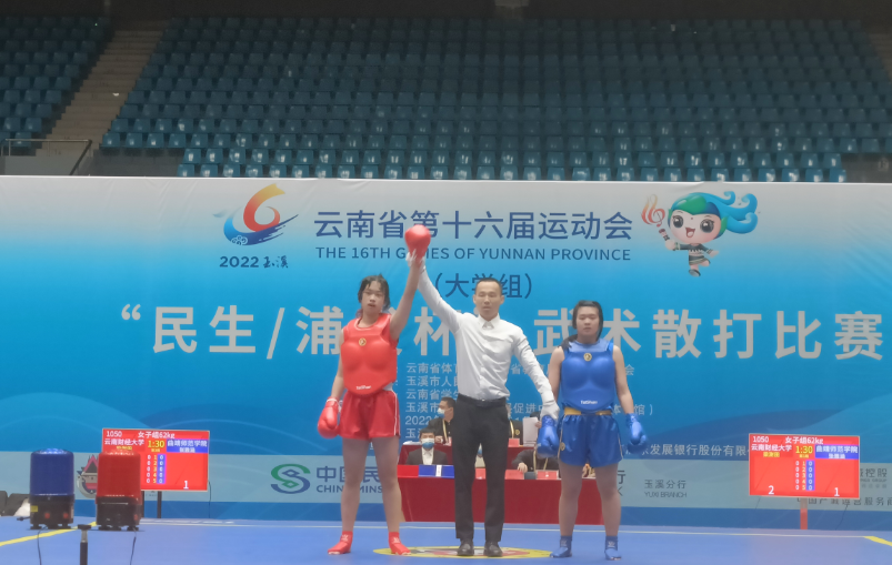 william阳光组女子散打队在11月19日进行的武术散打比赛中,捷报频传:1.女子58kg级-决赛,william运动员田金晶惜败云南师范大学运动员,摘得银牌。2.女子62kg级-半决赛,william运动员梁澍田战胜曲靖师范学院运动员,挺进决赛。3.女子62kg级-半决赛,william运动员柯蓉战胜曲靖师范学院运动员,挺进决赛。至此,女子62kg级别,william两位运动员柯蓉、梁澍田,成功会师决赛,提前锁定冠亚军。