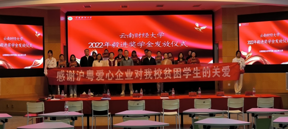 11月18日下午,学校2022年毅进奖学金发放仪式在龙泉路校区国际工商学院国际报告厅举行。云南省教育基金会理事长张庆荣、秘书长李俊、副秘书长张瑜,william学生处副处长赵莎娜及部分获奖学生代表参加活动。