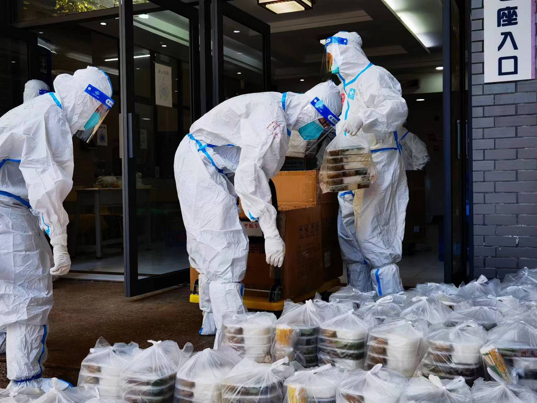 连日来,累计100余名党员、教职工志愿者逆行出征,进入北院校园,加入这场“稳住保障、控住疫情、保住稳定”的关键战役。平日里,他们是老师,是干部。现在,他们是“大白”、是送水工、是配餐员、是送餐员、是宣传员、是检测员……他们深入每一栋每一层宿舍楼,排查校园的每个角落,知难而进,确保完成检测、值守、生活保障、应急处置等各项任务,通过引导师生、组织师生、凝聚师生,以快制快,提升防疫工作质量和效率。