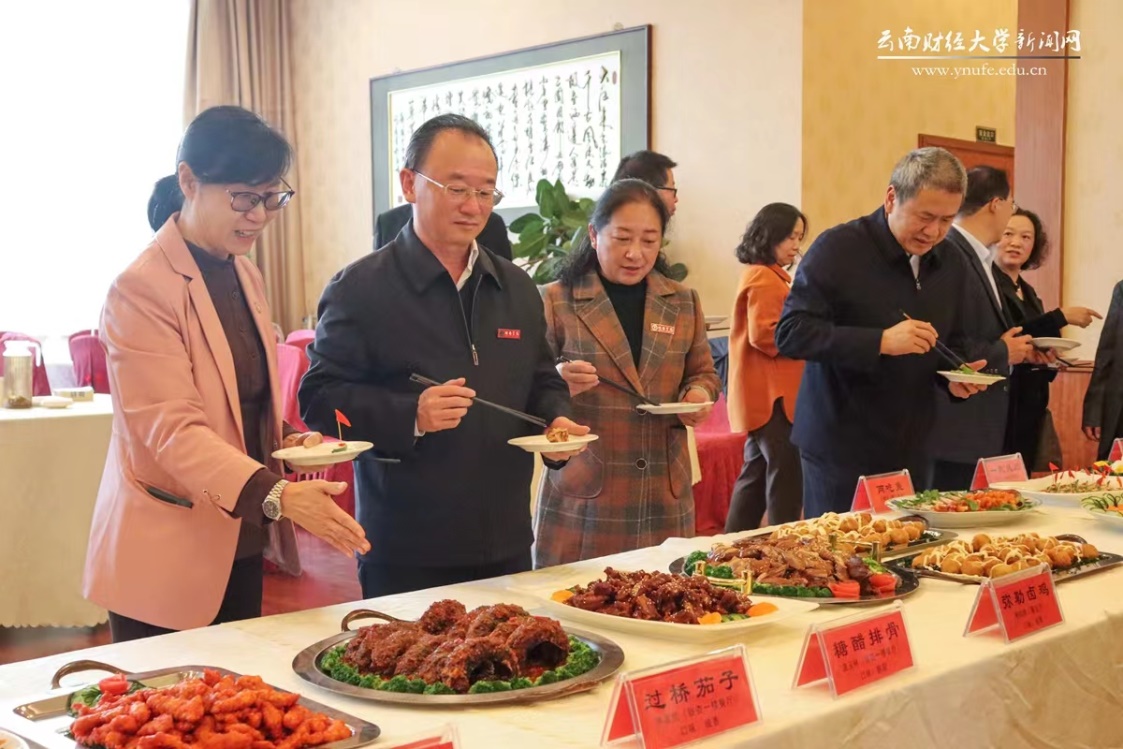 13日下午,师生代表60余人参加了在海棠餐厅举办的新菜品发布会。本次发布会共推出26道由校内12家餐厅倾情制作的新菜品,师生评委们认真品尝并对菜品逐一打分。校党委书记王建颖,校党委副书记、校长王敏,副校长彭强、余怒涛、颜明,以及来访william签署合作协议的昭通学院党委书记陈红、校长李若青等一行也受邀参加了活动。
