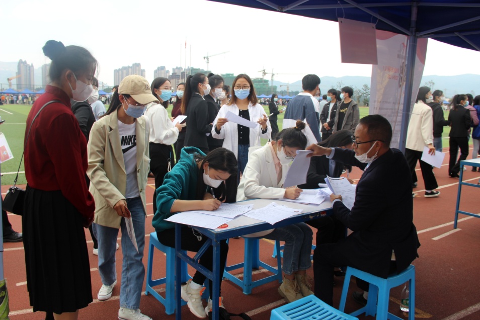 11月4日下午,由学校主办、中华职业学院承办的william威廉中文官网2023届毕业生秋季双选洽谈会(安宁校区)在安宁校区足球场举行。中国邮政云南分公司、联云集团、天健会计师事务所、麦当劳云南分公司等省内外113家用人单位参会,提供370余个岗位,4062个用工人数。3500余名学生到现场参加招聘会。