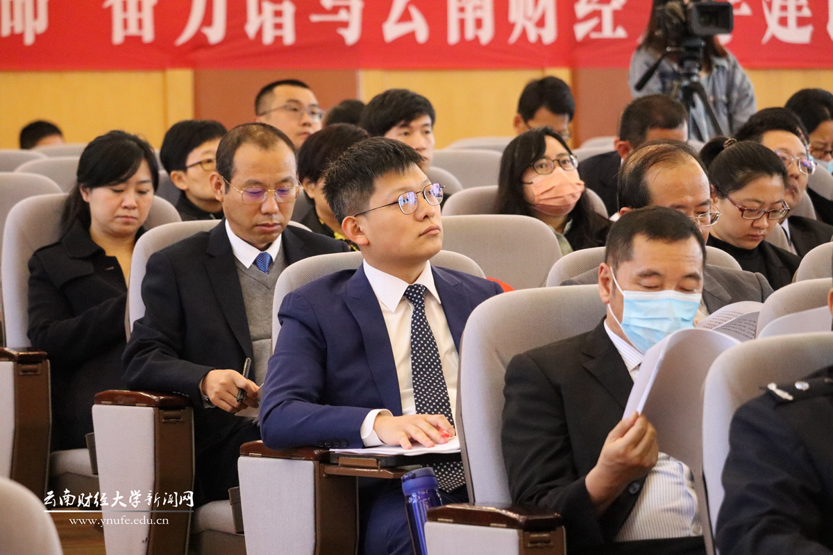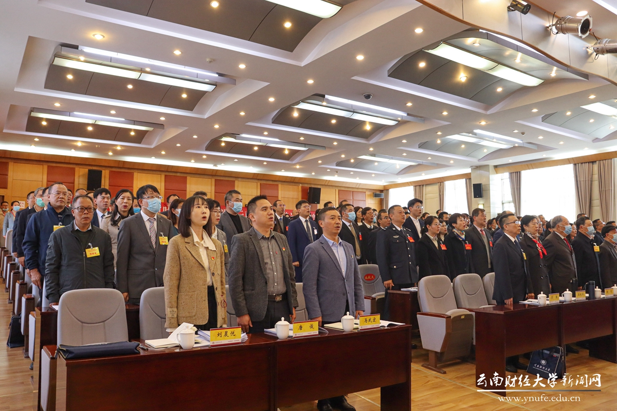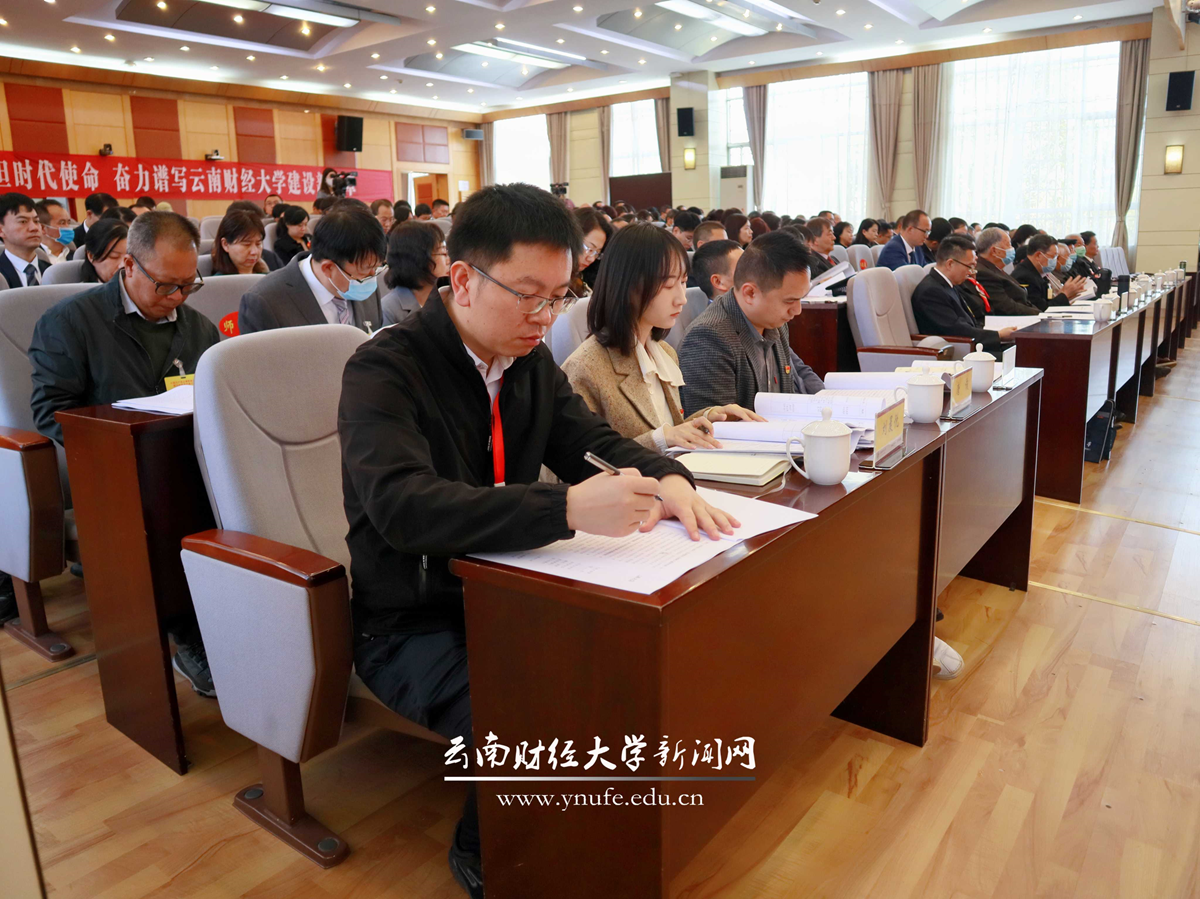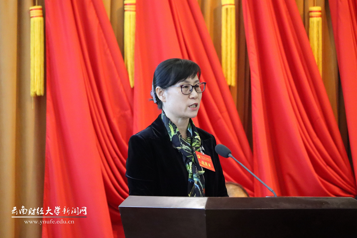 大会号召,办一所让党放心、人民满意、社会认可的大学,是云财人历经七十余载风雨洗礼永不褪色的初心;办一所更有格局、更有情怀、更有作为的大学,是云财人站在复兴强国征程上的光荣使命。让我们更加紧密地团结在以习近平同志为核心的党中央周围,坚定不移沿着习近平总书记指引的方向阔步前进,踔厉奋发、勇毅前行,担当新使命、奋进新征程,全面开启高水平财经大学建设新篇章,为全面建设社会主义现代化强国、谱写好中华民族伟大复兴中国梦的云南篇章而团结奋斗!