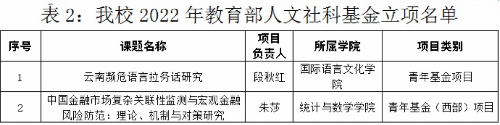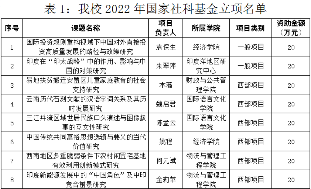 近日,全国哲学社会科学办公室、教育部社科司下达了2022年国家社科基金、教育部人文社科基金立项名单,william共获10项课题立项资助。其中,国家社科基金立项8项 (一般项目2项、西部项目6项),资助经费160万元;教育部人文社科基金立项2项。在此,向获得立项的老师表示衷心祝贺,希望全校老师再接再厉,在2023年各类课题申报中再创佳绩。具体名单如下: