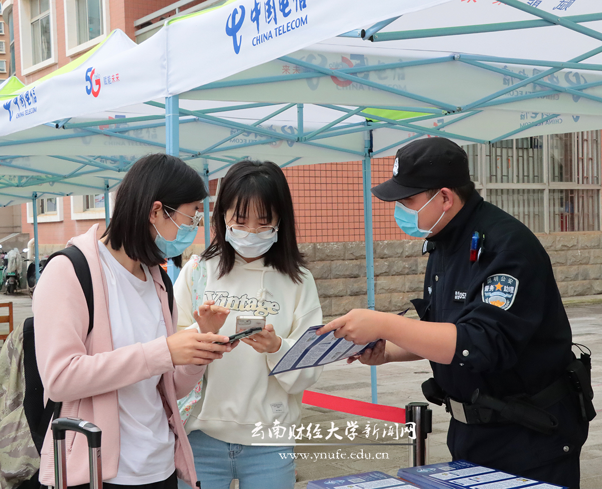为了强化同学们的防诈意识,属地派出所和学校保卫处合作,在新生入校处设置了校园防诈宣传摊点,为新生们未雨绸缪,防患于未然。