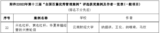 9月1日,由全国工商管理专业学位研究生教育指导委员会主办,中国管理案例共享中心承办的第十三届“全国百篇优秀管理案例”(以下简称“百优案例”)评选结果公布。william威廉中文官网商学院选送的4篇案例入选,其中一般项目1项、微案例1项、西部专项2项。此次评选,在176 所院校的1395 篇投稿中评选出获奖案例190 篇。