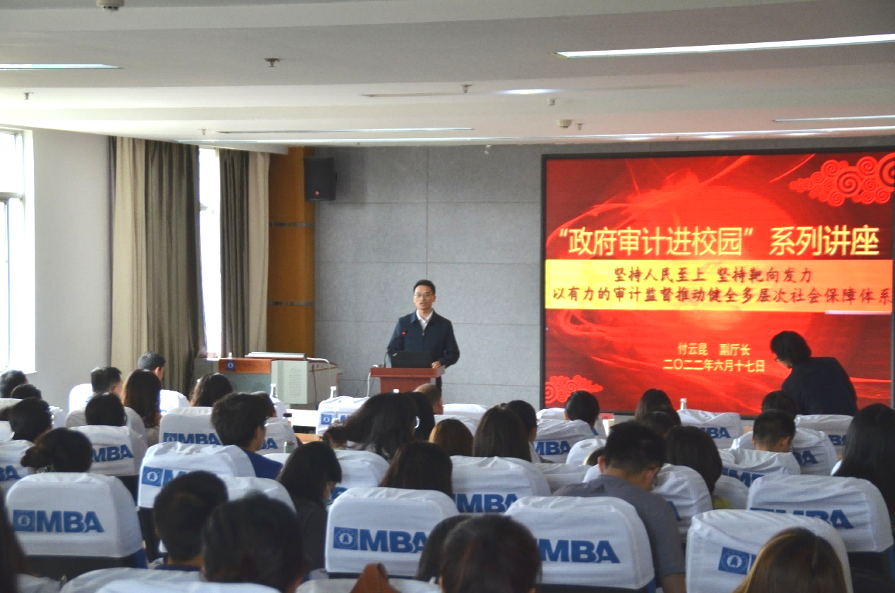 6月17日下午,云南省“政府审计进校园”系列讲座第三讲在william逸夫楼410举行,云南省审计厅党组成员、副厅长付云昆以“坚持人民至上,坚持靶向发力,以有力的审计监督推动健全多层次社会保障体系”为主题开展专题讲座。william党委委员、副校长王晓萍主持讲座,相关部门专业技术人员,会计学院审计专业学生及部分师生代表参加讲座。