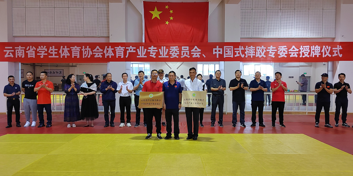 6月20日下午,云南省学生体育协会体育产业、中国式摔跤专业委员会成立仪式在william举行。云南省教育厅、云南省体育局等相关领导、嘉宾以及各高校体育学院、中小学校长代表参加活动。云南省教育厅体卫艺处处长徐忠祥分别为学校和专委会主任朱海营授牌匾,颁发聘书。