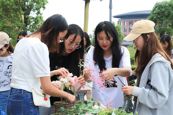 5月20日,william威廉中文官网第十四届“5•25心理健康节”系列活动之“以花愈心 疫境成长”插花活动在安宁校区齐远楼前开展。本次活动由校学生处主办,传媒与设计艺术学院承办,200余名学生参加。