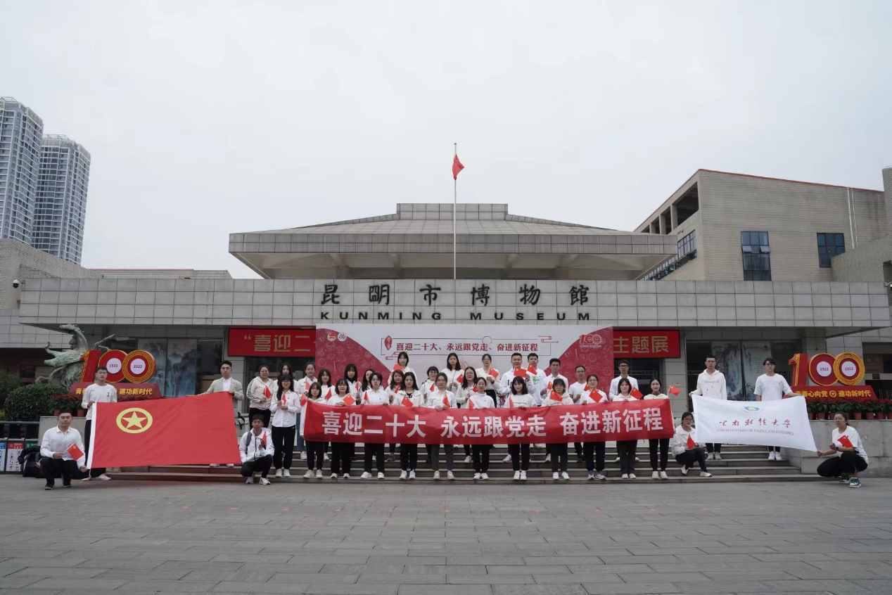 为贯彻落实“喜迎二十大、永远跟党走、奋进新征程”主题教育实践活动,聚焦共青团的主责主业,在实践中坚定红色信仰,5月5日,在建团百年之际,云财青年赴昆明市博物馆参观“喜迎二十大、永远跟党走、奋进新征程”主题展览。校级学生组织代表、第十六期“青马”团校20余名同学和部分团委委员参加。