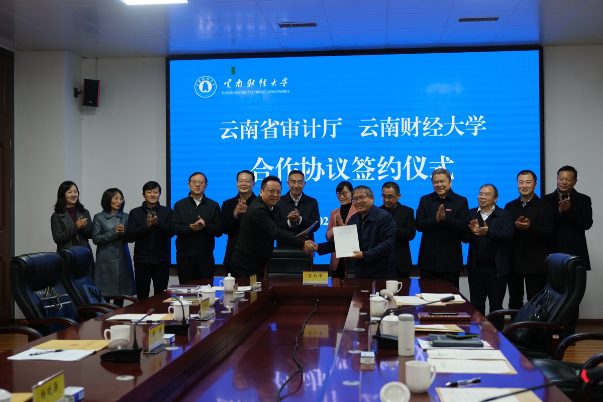 12月17日,学校与云南省审计厅举行厅校合作座谈会并签署合作协议。审计厅党组书记、厅长谢健,党组副书记、副厅长王洪斌,党组成员、副厅长杨晓源,william党委书记王建颖,党委副书记、校长伏润民,校党委委员、副校长胡海彦、王敏,校党委委员、宣传部长徐宝春出席。谢健与伏润民代表双方签约,王敏主持会议。