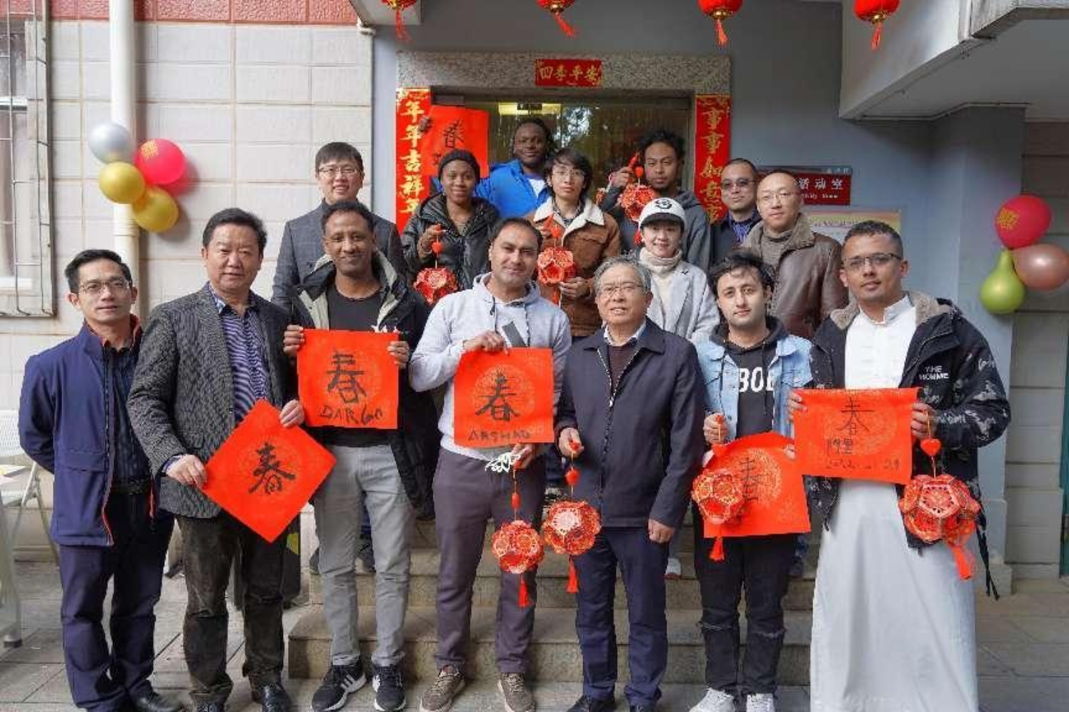 国际学生教育管理中心还精心组织留校国际学生开展中国传统迎新春专题活动。施仲军示范和指导国际学生如何写好毛笔字,与国际学生一起粘灯笼、剪窗花,一起观看了由william4名国际学生参与录制的迎接北京冬奥会“云合唱”歌曲《冰雪之望》。