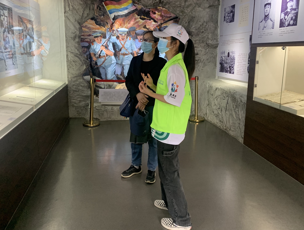 台上三分钟,台下数月功,每一次打磨都成为闪光的光源,每一秒的努力累积成精彩的讲解。“我第一次讲解前真的很紧张,还有点胆怯,站在一边迟迟不敢工作。一对中年夫妇发现了我,主动上前提出让我带他们逛逛,做一下讲解。参观过程中他们不断鼓励我,夸我的讲解详细到位,这次讲解过后我信心倍增。”这次愉快的经历为罗鑫积极自信地完成讲解任务提供了良好的开端,最终圆满地完成了志愿工作。