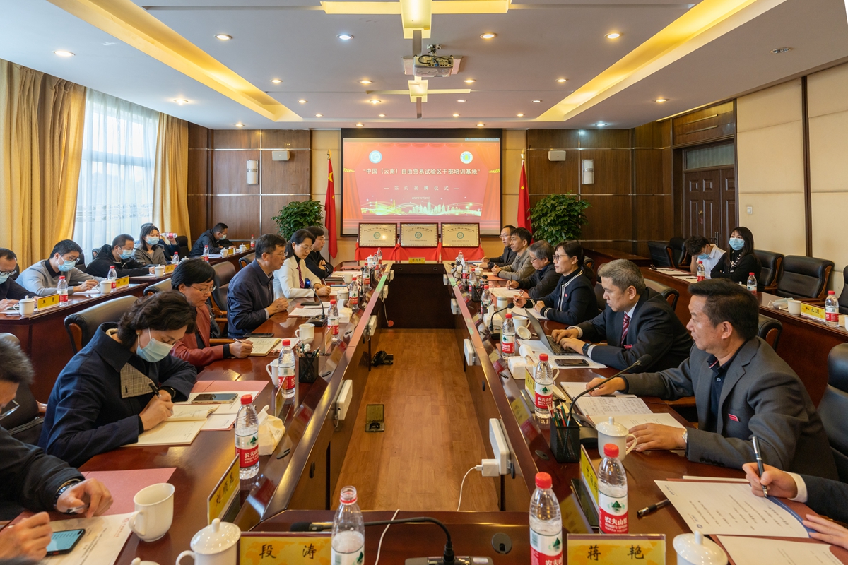 省商务厅相关部门负责人,学校办公室、科学技术处、财政与公共管理学院、信息学院、海外学院、印度洋地区研究中心负责人参加仪式。自贸试验区红河和德宏片区自贸办及管委会、自贸试验区联动创新区曲靖经开区、大理经开区、普洱国家绿色经济示范区、中老磨憨—磨丁经济合作区管委会相关部门负责人等线上参会。