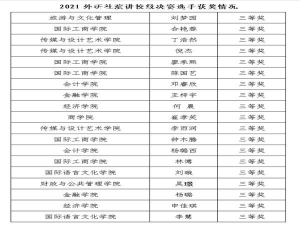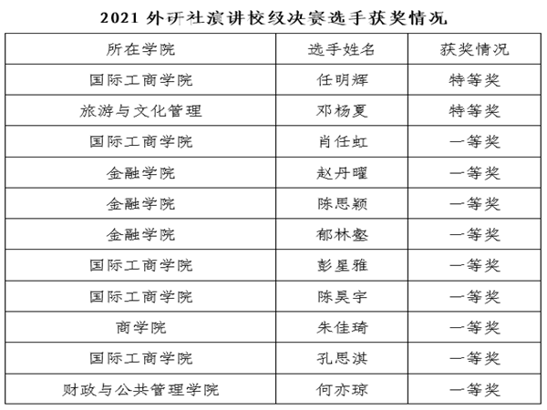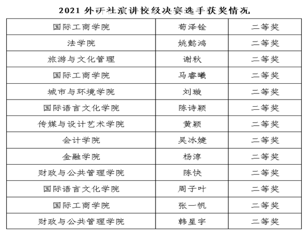 经过近两个半小时的角逐,校级决赛决出2名选手进入省级复赛,国际工商学院任明辉同学、旅游与酒店管理学院邓杨夏同学将于11月6日代表william参加在云南农业大学举行的云南省赛区复赛。
