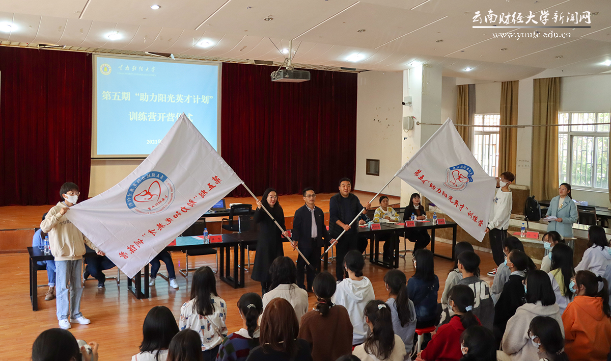 龙希国承办第五期“助力阳光英才计划”的统计与数学学院和中华职业学院授营旗并表示感谢。他表示,“助力阳光英才计划”是学校秉承“资助育人、扶贫扶志”理念,拓宽资助育人途径,促进家庭经济困难学生全面发展、健康成长的积极探索,旨在为家庭经济困难学生提供一个互助交流、提升自我、拓展能力、开阔视野的平台,希望参训同学围绕本期主题,明确个人目标,严格要求自己,积极参加各项活动,收获知识、收获技能、收获友谊、收获成长。