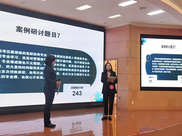 本次比赛分两个阶段进行,第一阶段为11月16日举行的基础知识测试,第二阶段为11月19日举行的案例研讨、谈心谈话。经过基础知识测试,8名选手从初赛参赛者中脱颖而出,进入决赛环节。基础知识测试主要考察辅导员的理论素养和业务知识;案例研讨主要考察辅导员综合运用理论分析问题、研判问题、解决问题的能力;谈心谈话主要考察辅导员对学生特征、学生成长成才规律的了解把握程度以及对学生的教育引导能力、解决理论困惑和实际问题的能力。参赛的辅导员教师在案例研讨环节,在竞争中合作,面对不同的案例共同研讨,结合自身的工作实际对案例进行准确分析。在谈心谈话环节,面对学生在校园生活中出现的不同问题情境模拟,紧扣问题关键,耐心倾听、循循善诱,展现出良好的职业能力素养。