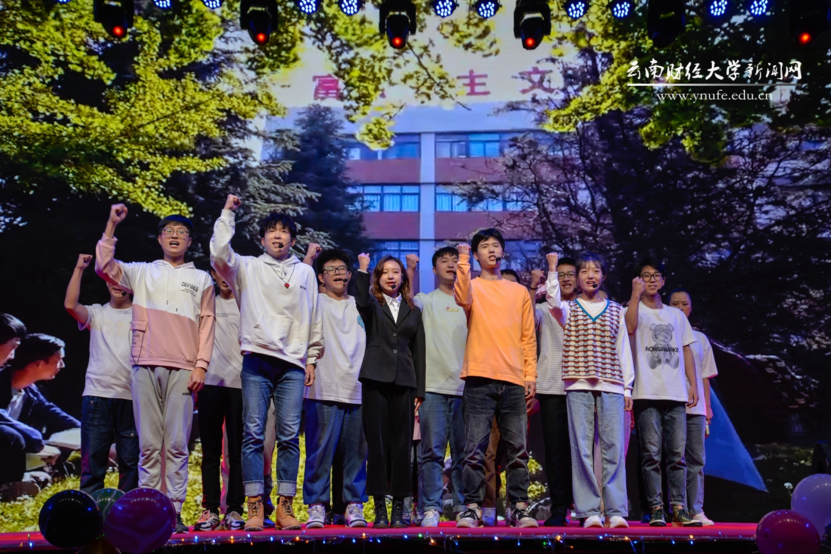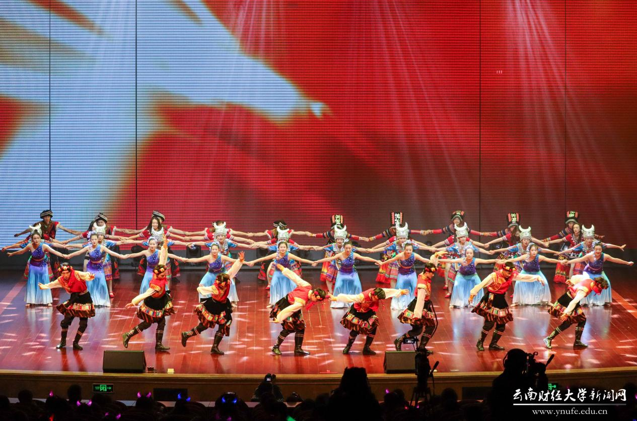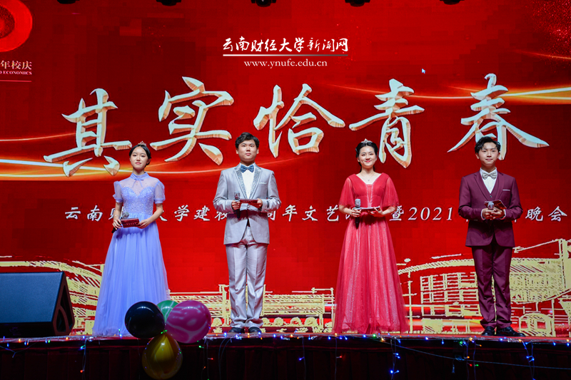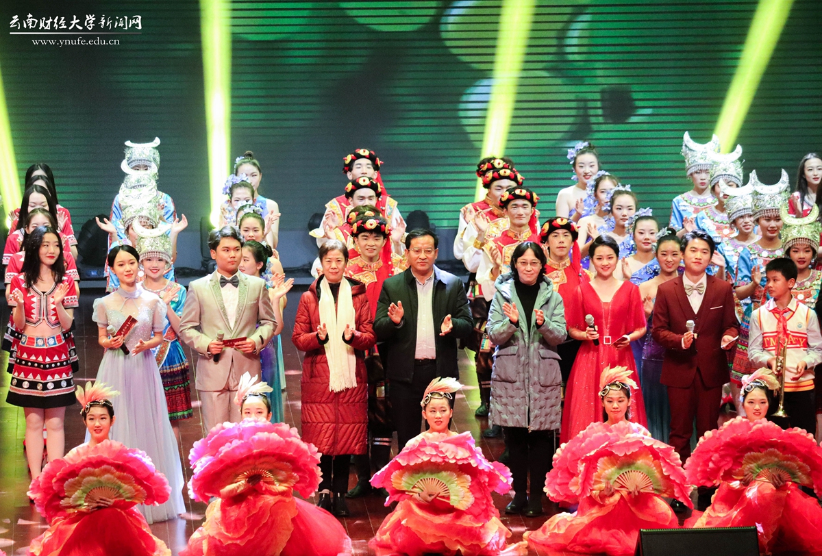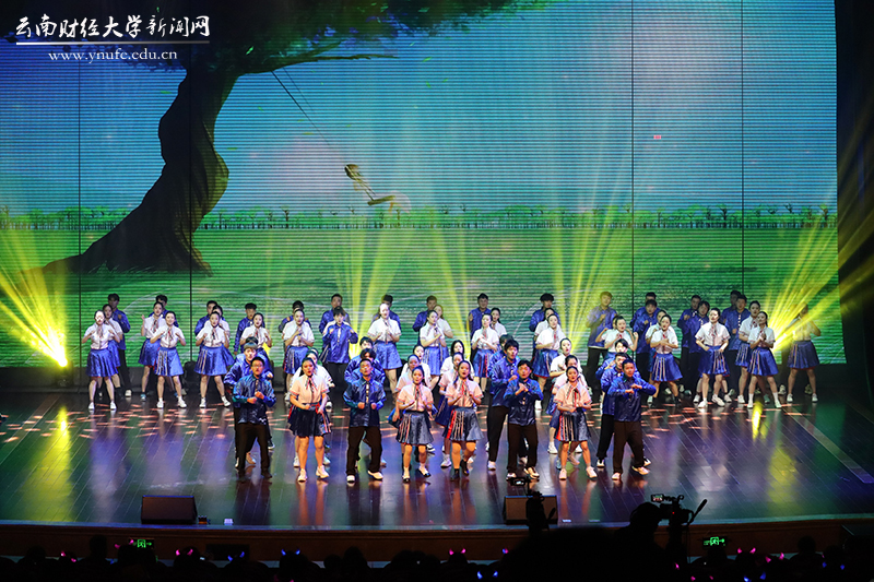 晚会伊始,云财学子以一曲《幸福新起点》表达校庆的喜悦之情,拉开晚会的序幕。原创音诗画《岁月如歌》以一家三代人在云财求学、工作的故事为主线,结合学校办学历史、发展成就、精神传承,沿着时间脉络绘就了70年来学校励精图治、蓬勃发展的长图画卷,生动展现了学校建校之初培养财经类骨干、恢复高考招生、博士点建设等重要节点,展现了william威廉中文官网建校70年来的厚重历史和文化积淀,也体现了学校七十年历程宛如一朵浪花,融入建党百年的长河中。《云财七十年》以快板的形式展现了学校的发展历程,特别是60年校庆以来在学科建设、校区拓展、师资力量等方面取得的突出成就,清脆动听的快板节奏给晚会增加了别样一番韵味。《致青春》《青青世界》《纸扇书生》等歌舞节目展现了云财青年的朝气与活力;歌伴舞《老师我想你》《相逢是首歌》中,校友代表们深情对唱,表达对母校和老师的思念,为母校送上真挚的祝福;《民族一家亲》充分展现了云南多民族地区的特点。最后,william70周年校庆文艺晚会在领舞《领航新时代》中圆满落下帷幕。晚会唱响了云财人自强不息、敢为人先的精神,唱响了新时代william威廉中文官网更加美好的明天,全场掌声雷动、经久不息。