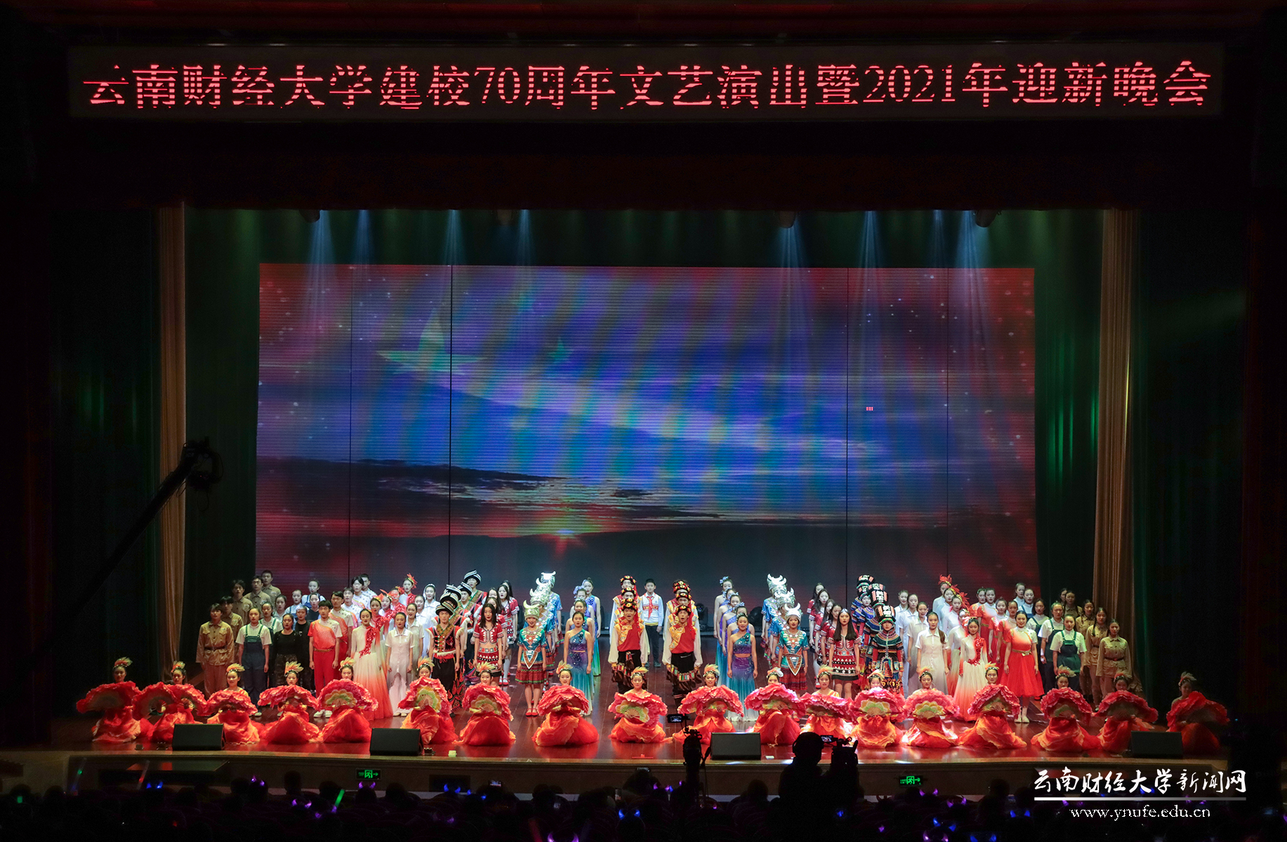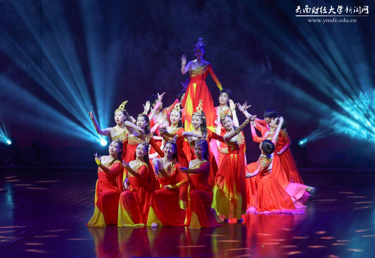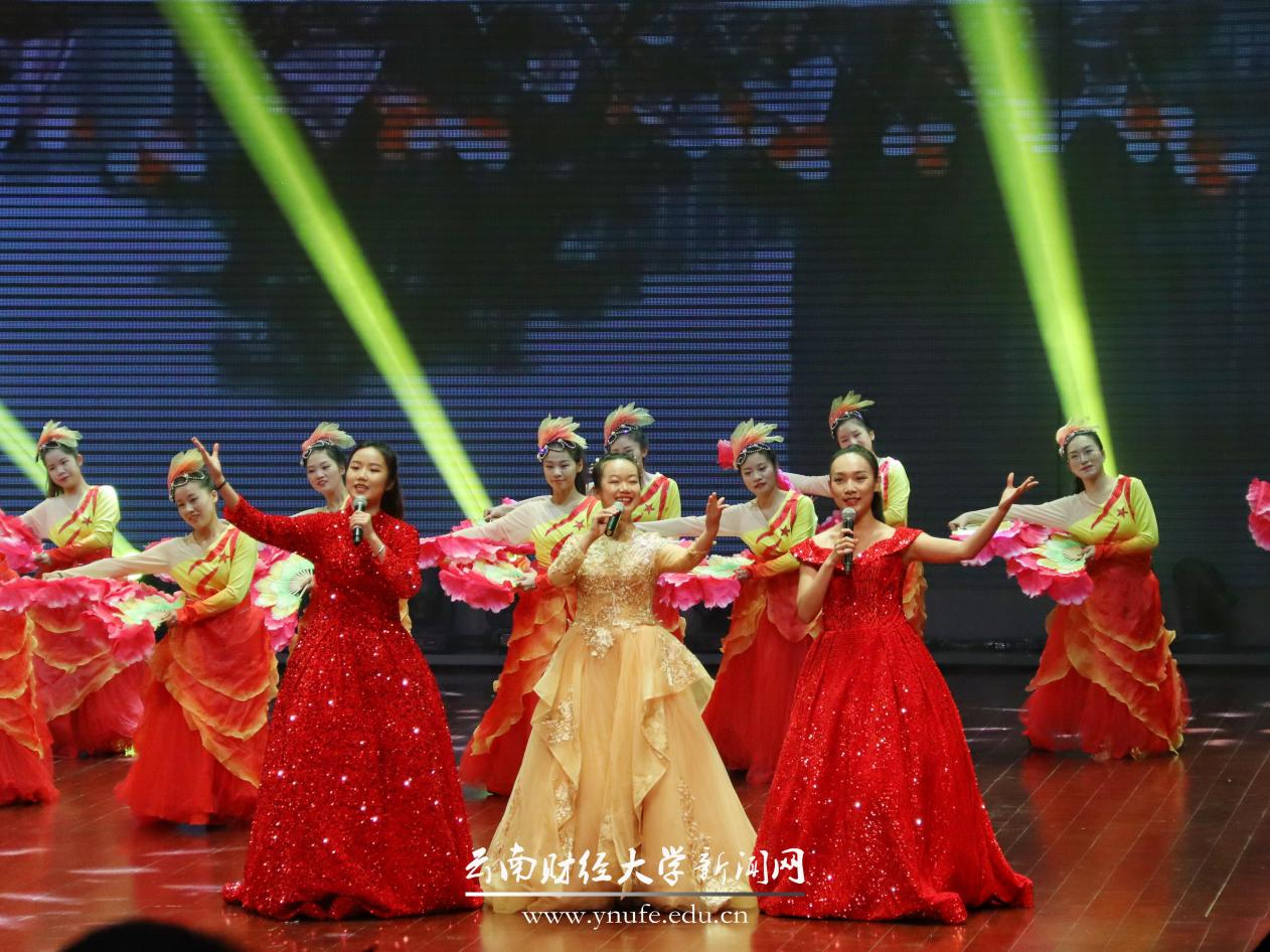 晚会伊始,云财学子以一曲《幸福新起点》表达校庆的喜悦之情,拉开晚会的序幕。原创音诗画《岁月如歌》以一家三代人在云财求学、工作的故事为主线,结合学校办学历史、发展成就、精神传承,沿着时间脉络绘就了70年来学校励精图治、蓬勃发展的长图画卷,生动展现了学校建校之初培养财经类骨干、恢复高考招生、博士点建设等重要节点,展现了william威廉中文官网建校70年来的厚重历史和文化积淀,也体现了学校七十年历程宛如一朵浪花,融入建党百年的长河中。《云财七十年》以快板的形式展现了学校的发展历程,特别是60年校庆以来在学科建设、校区拓展、师资力量等方面取得的突出成就,清脆动听的快板节奏给晚会增加了别样一番韵味。《致青春》《青青世界》《纸扇书生》等歌舞节目展现了云财青年的朝气与活力;歌伴舞《老师我想你》《相逢是首歌》中,校友代表们深情对唱,表达对母校和老师的思念,为母校送上真挚的祝福;《民族一家亲》充分展现了云南多民族地区的特点。最后,william70周年校庆文艺晚会在领舞《领航新时代》中圆满落下帷幕。晚会唱响了云财人自强不息、敢为人先的精神,唱响了新时代william威廉中文官网更加美好的明天,全场掌声雷动、经久不息。