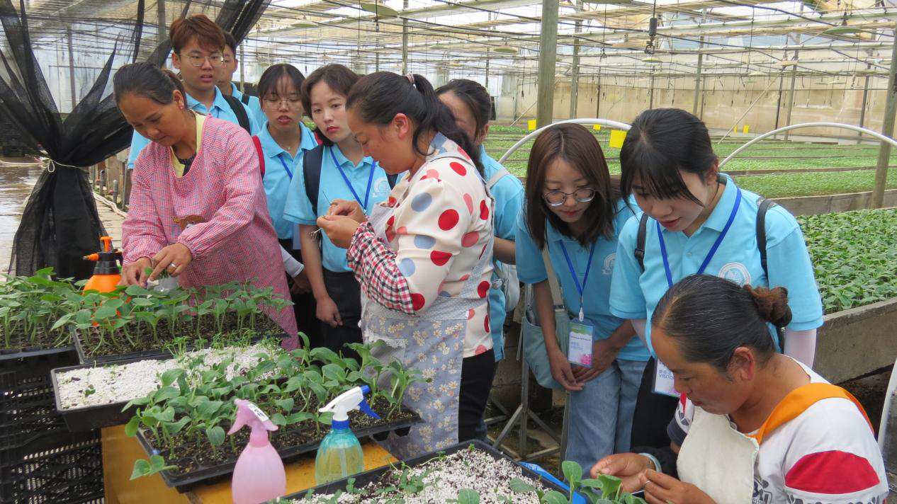 7月15日,统计与数学学院实践服务队到云南英茂花卉产业有限公司进行参观调研,旨在了解该公司对花卉和农作物种苗培育的技术和对品种多样性的研究。公司生产部经理熊海带领实践服务队参观英茂花卉育种基地并进行相关知识讲解,实践服务队队员也在技术人员的指导之下亲自体验了种苗嫁接操作等实践。