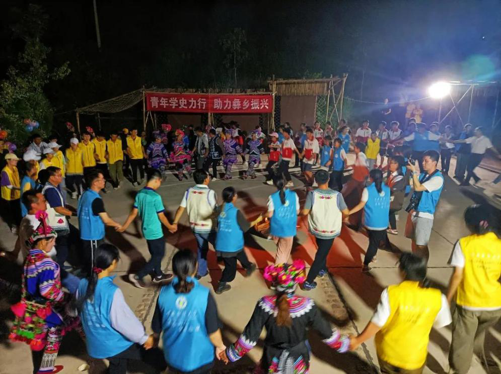 7月16日晚,william暑期“三下乡”社会实践团全体师生与当地村民携手举办篝火晚会。