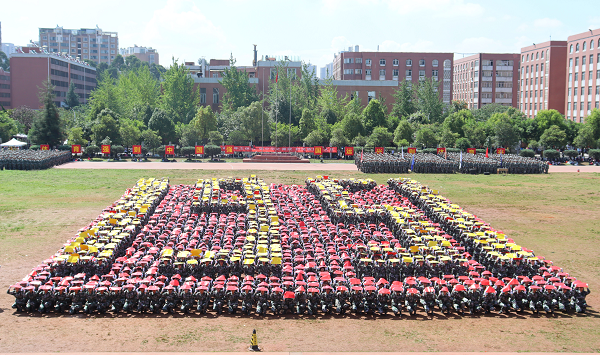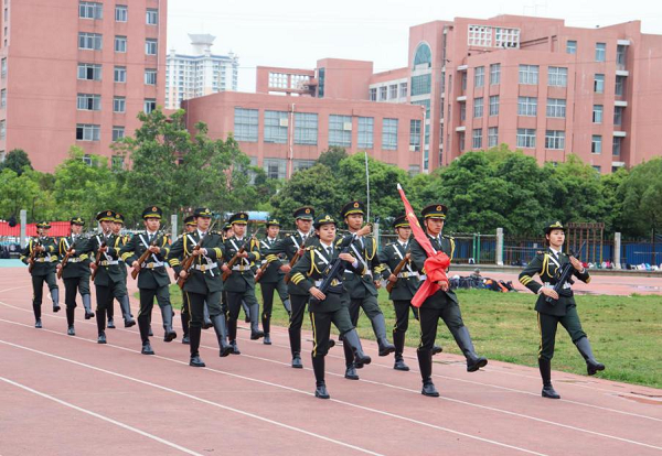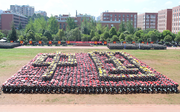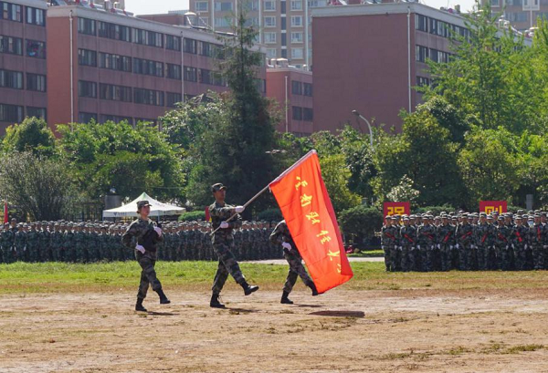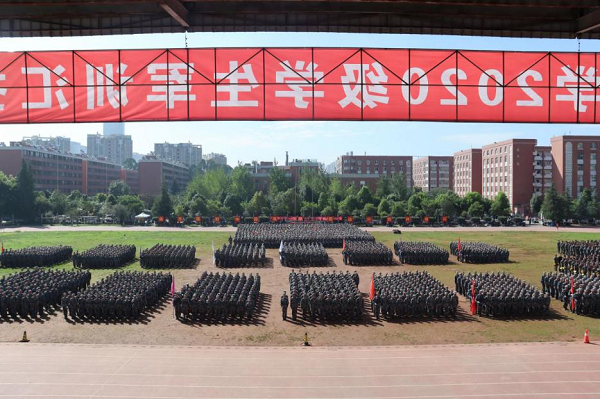 在升国旗、迎校旗、领导检阅学生方阵后,由13家学院组成的分列式方阵喊着响亮的口号、踏着整齐的步伐,英姿勃发走过主席台,展示了2020级军训学生昂扬向上、自信飞扬的青春风采。