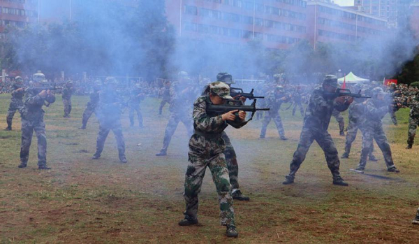 下午,william中华职业学院2020级1500余名参训学子在安宁校区也举行了汇报表演。至此,william2021年学生军训工作圆满结束。