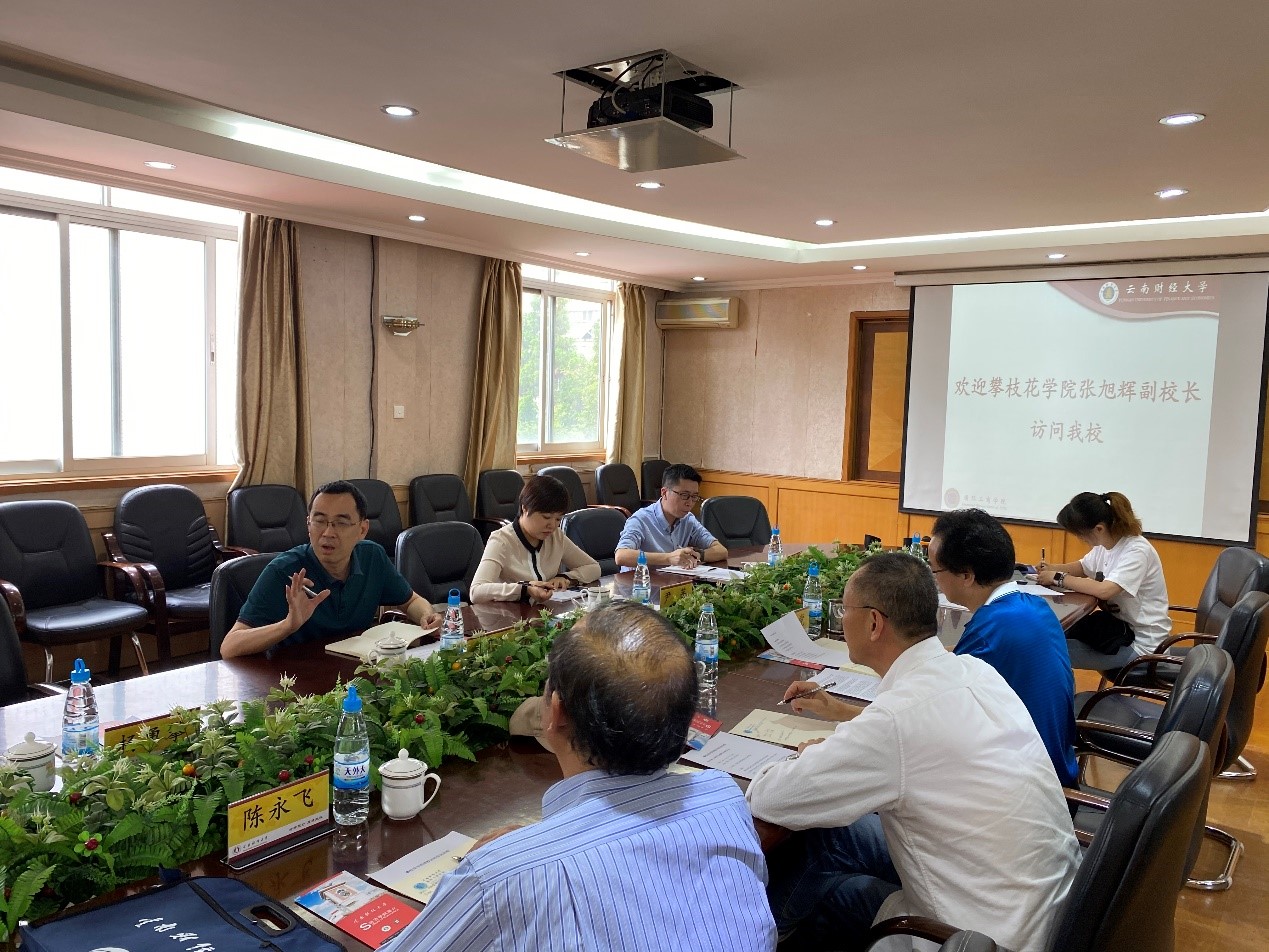张旭辉介绍了攀枝花学院的办学情况与特色,详细介绍了该校的九大学科门类、两个硕士点以及“三步走”的办学战略,同时就资产评估和国际商务两个专业学位硕士点的建设提出合作意向。