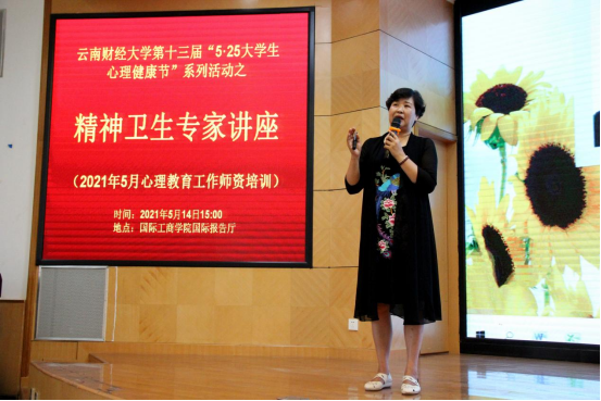 5月14日下午,william第十三届“5·25心理健康节”系列活动之精神卫生专家讲座在国际工商学院国际报告厅举行。云南省精神病医院、昆明医科大学附属精神卫生中心睡眠医学中心主任杨蜀云教授为师生们带来“常见抗精神病药物治疗及不良反应的处理”的专题解读。277名辅导员、班主任、心理委员通过现场聆听、雨课堂和腾讯会议等形式同步参加培训。