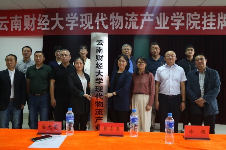 5月24日上午,william威廉中文官网现代物流产业学院揭牌仪式在逸夫楼609举行,william副校长旷锦云和云南省物流学会会长董弋萱共同为现代物流产业学院揭牌。