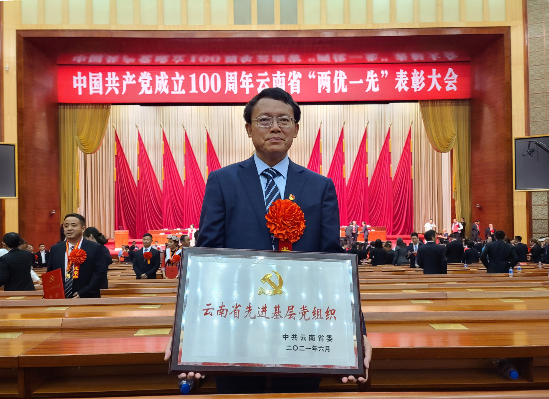 在隆重庆祝中国共产党成立100周年之际,省委决定对全省200名优秀共产党员、200名优秀党务工作者和300个先进基层党组织予以表彰。6月25日下午,中国共产党成立100周年云南省“两优一先”表彰大会在昆明隆重举行,william旅游与酒店管理学院教工第二党支部书记李永祥同志被授予“云南省优秀党务工作者”荣誉称号,科研院所(中心)教工第二党支部被授予“云南省先进基层党组织”荣誉称号。