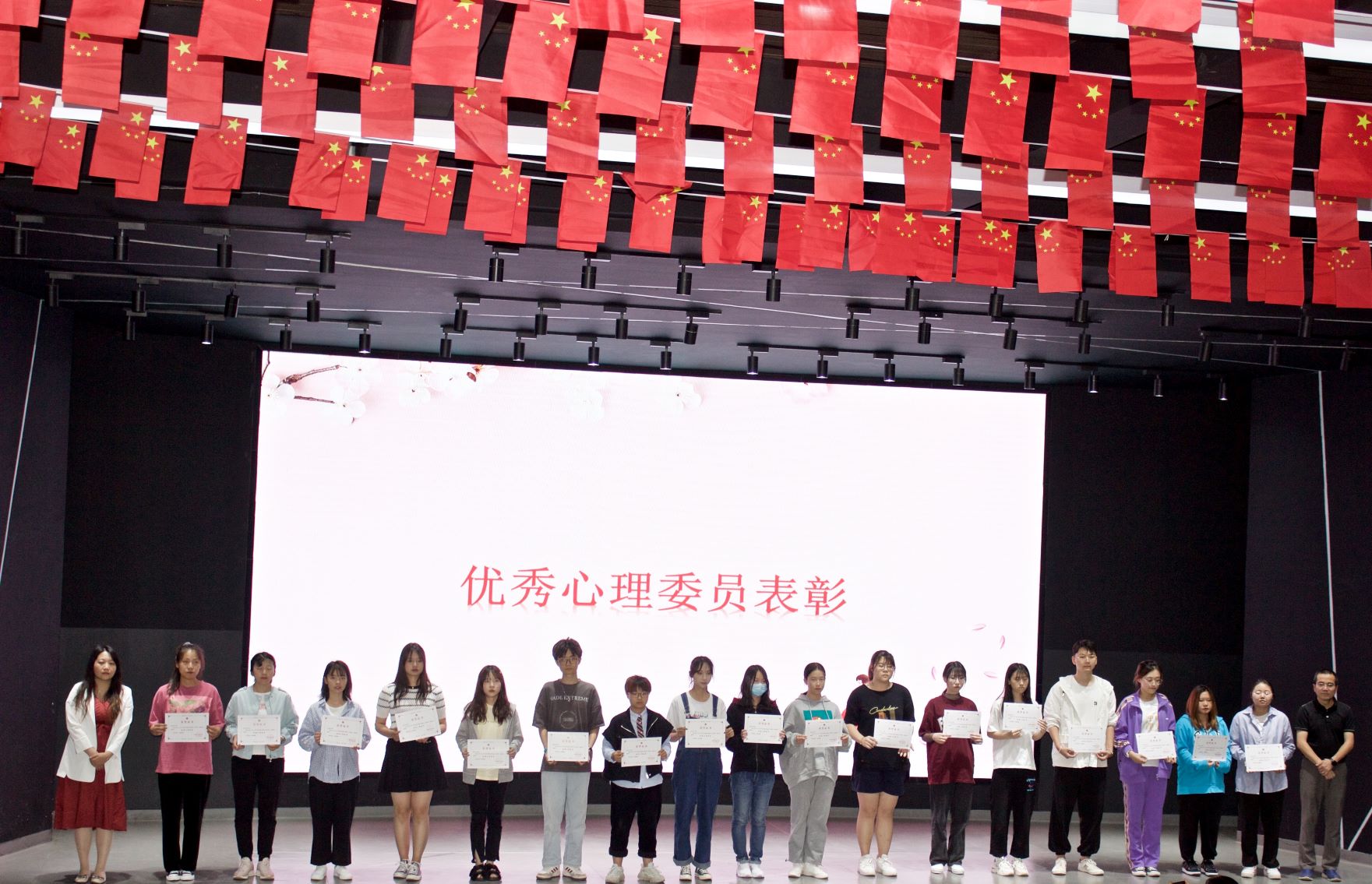 6月4日下午,2020-2021学年心理委员工作总结分享会暨优秀心理委员表彰会在北院路演大厅举行,共99名优秀心理委员受到表彰,学生处处长寸丽锋、专职心理教师龙茜为优秀心理委员代表颁发了荣誉证书,专职心理教师陈瑜婕、王瑞为心理委员代表颁发了“心理委员MOOC培训认证证书”。