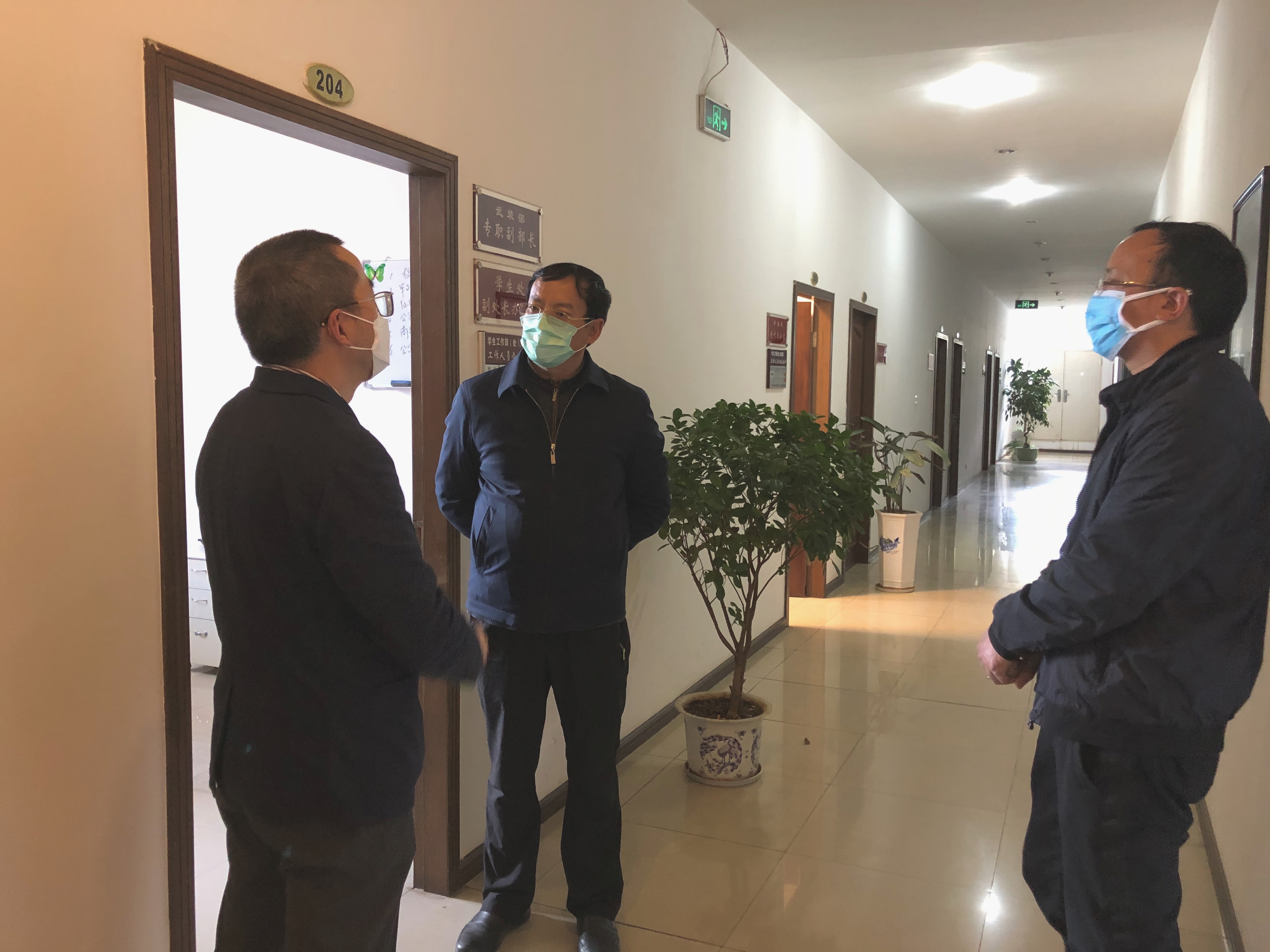 3月9日,校党委副书记桂正华到学生处就疫情防控、返校准备、征兵等工作进行调研和指导,并看望了值班工作人员。