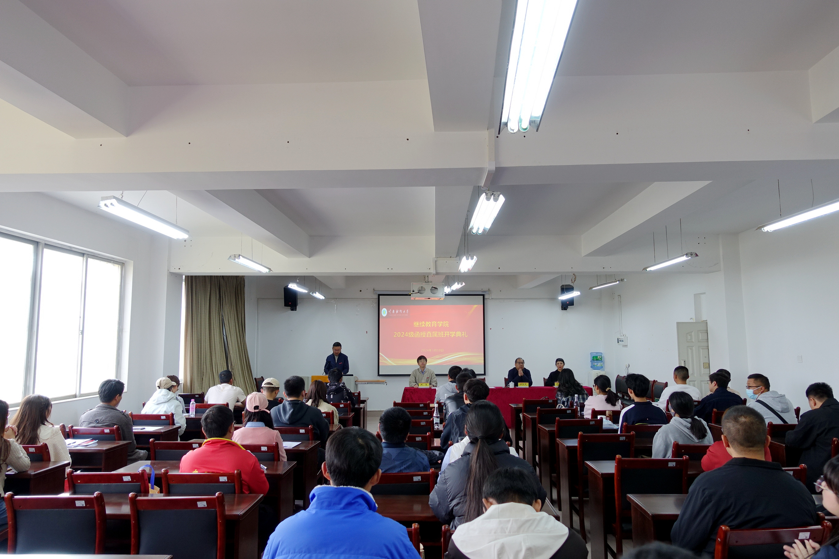 3月10日上午,继续教育学院在北院逸夫楼406多媒体教室举行2024级新生开学典礼。学院党支部书记金国兴、院长姚建峰与函授直属班70余名新生代表参加。典礼由副院长张翼主持。