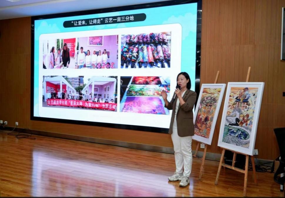 云南艺术学院蓝丝带社科普及志愿服务队指导教师王开莹、志愿服务队核心成员分别介绍了“让爱来·让碍走”孤独症儿童公益教育服务项目的由来、理念、开展方式,分享了参与志愿服务活动的心得体会。