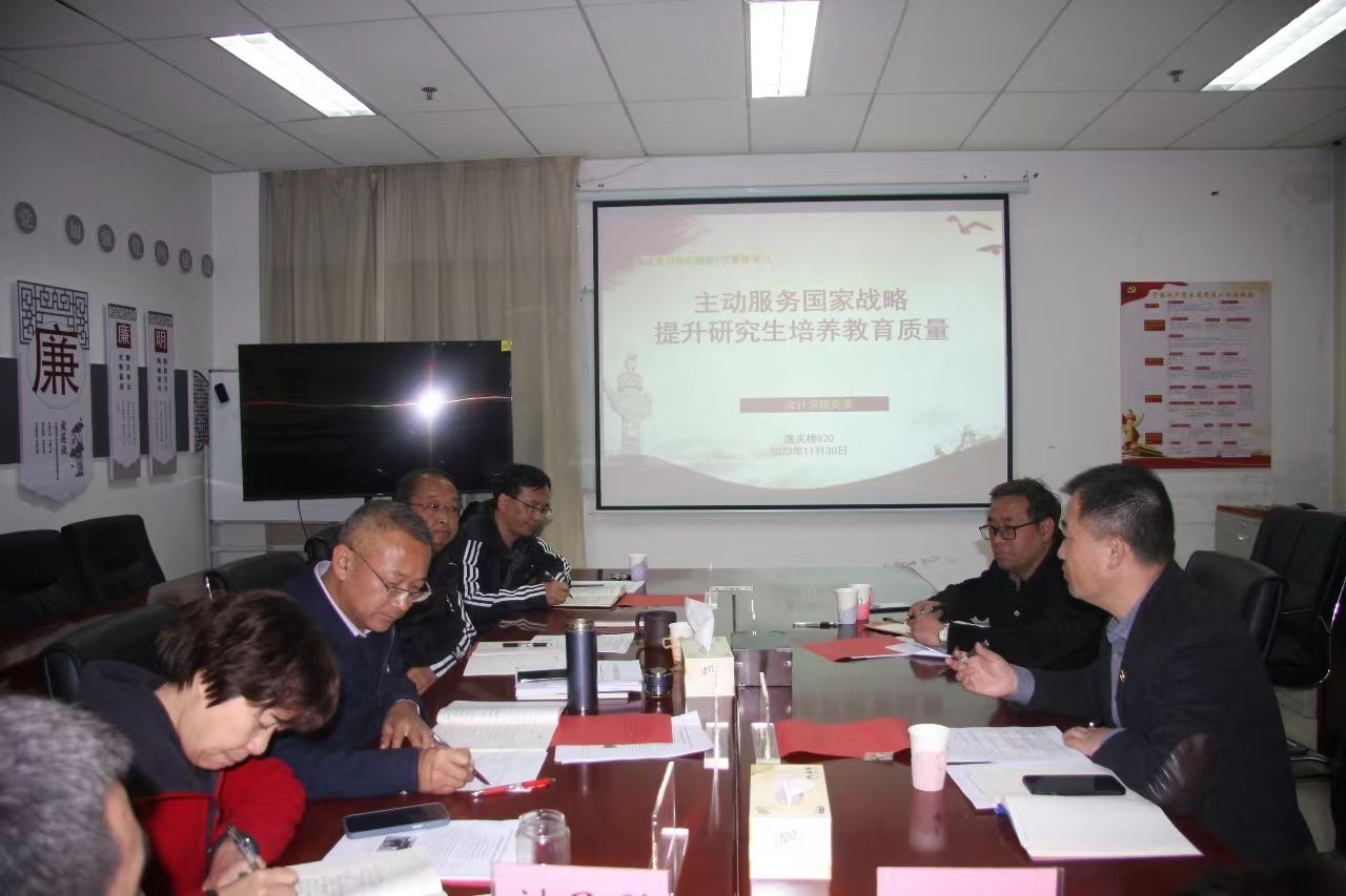 党委委员、副院长纳超洪以《主动服务国家战略 提升研究生培养质量》为主题,从学院研究生培养平台与现状、数智化会计发展与建设现状、教育管理做法经验、问题与对策四个方面进行了重点发言。其他党委委员围绕主题,从不同角度各有侧重交流了研究生教育培养的特点规律、做法经验、成效特色,存在不足及对策建议。