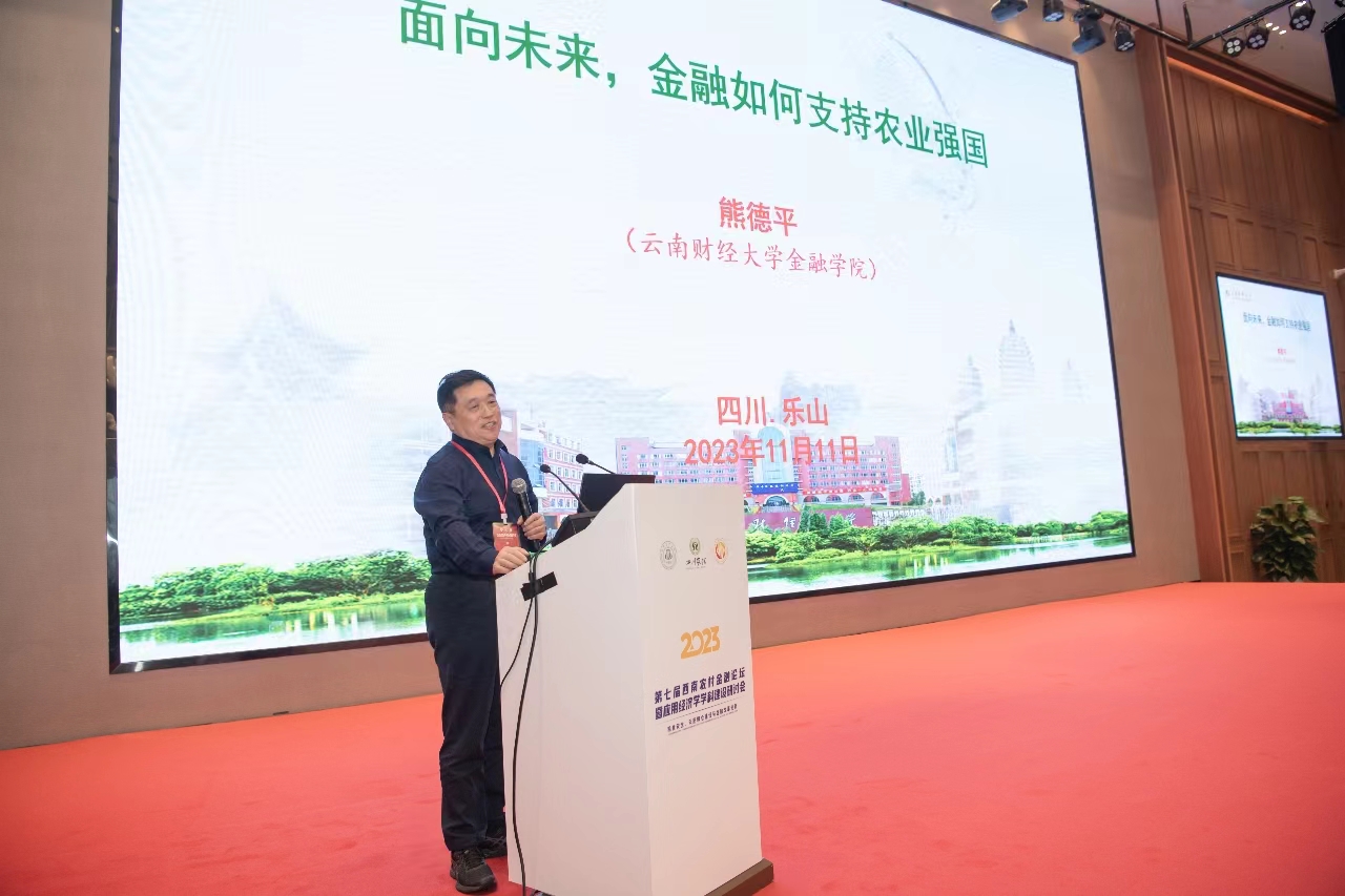 11月11—12日,由四川农业大学,四川省农村信用社联合社,四川省金融学会乡村振兴金融专委会主办,四川农业大学经济学院和四川省乐山市农村商业银行承办的第四届西南农村金融论坛在四川省乐山市举行。本次论坛的主题是粮食安全、天府粮仓建设与农村金融改革。来自中国社科院,中国农业大学,中国人民大学,国家粮食储备局,中国人民银行四川省分行等几十家高校,科研院所,金融机构和政府相关部门的200多位专家学者参加交流研讨。金融学院名誉院长熊德平教授应邀参会,并做了《面向未来,金融如何支持农业强国》的大会主旨发言,还应邀参加了四川农业大学应用经济学学科暨金融学国家一流专业建设闭门研讨会并做交流发言。