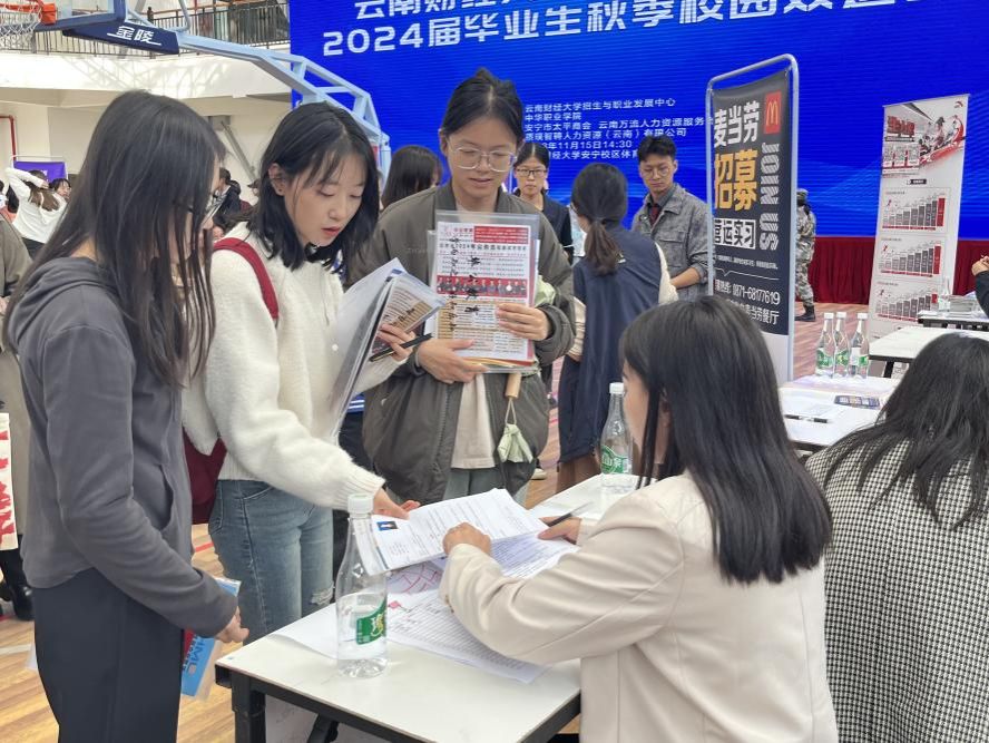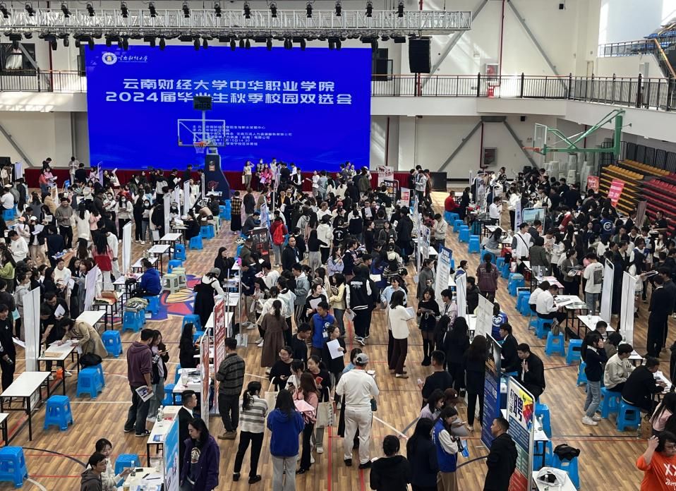 11月15日下午,中华职业学院在william威廉中文官网安宁校区体育馆举办2024届毕业生秋季校园双选会。南京证券股份有限公司云南分公司、东方航空物流股份有限公司云南分公司、中国联通等124家企业到场招聘,提供就业岗位395个,招聘需求人数5499人。