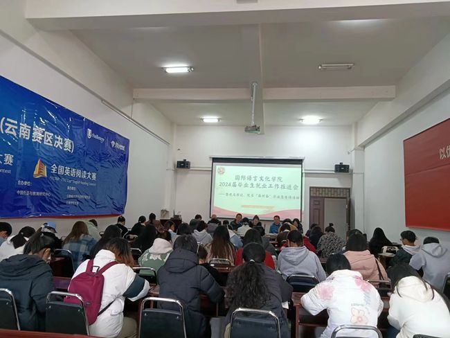11月17日,国际语言文化学院在博远楼403举行2024届毕业生就业创业工作推进会暨“我与书记、院长面对面毕业生专场”活动。学院党委书记杨秀伟、院长刘代容、副院长曾骞、副院长段春锦、副院长孙婷婷、2024届毕业班班主任、各系主任、学院各部门负责人及毕业班代表参加活动。
