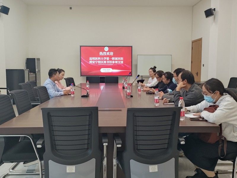 10月23日下午,昆明医科大学第一附属医院朱梅副院长、图书馆刘青馆长等一行6人到安宁校区图书馆开展新馆建设调研、业务交流。图书馆副馆长陈芊里及相关人员参加调研交流。