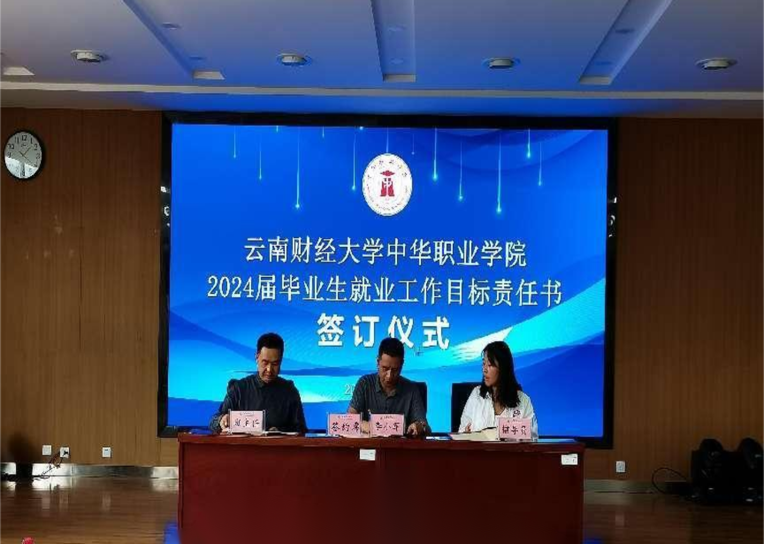9月20日下午,中华职业学院在修远楼204室召开2023-2024学年就业工作动员会。会上,院长李小军与辅导员代表、班主任代表签订了就业目标责任书。会议由学院党委副书记兼纪委书记张玉琨主持。
