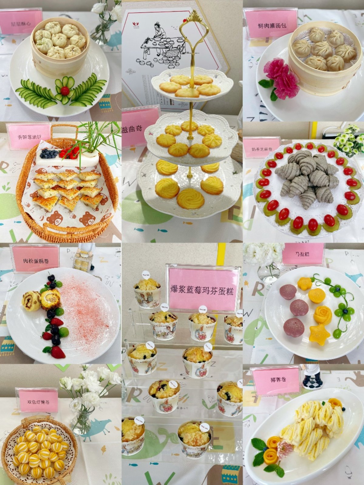 厨工组以“面面俱到,相伴成长”为主题,开展中西式创意面点制作,将鲜肉灌汤包、老昆明破酥包、奶香芝麻卷、海盐曲奇等点心展现在评委面前。各色面点不仅在味道和营养搭配上下足功夫,在摆盘装饰方面也用心不少,获得了评委的一致好评。