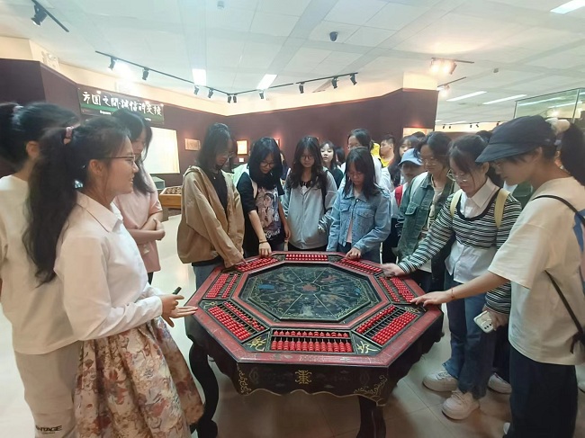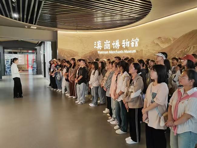 校园里,学院志愿者为新生们讲解了校园导览,带领新生体验秋季校园风光,并组织指引新生参观了学校校史馆、中国少数民族财会博物馆、滇商博物馆、锺正山美术馆等场馆。在校史馆,大家跟随讲解员了解了学校发展历史、杰出校友、重要成果奖项等内容,感受了学校的历史底蕴、人文魅力和艺术风采。在中国少数民族财会博物馆,随着讲解员的介绍,大家观摩了三铜士、诚信鼎、斗、八角算盘等文物,了解商帮文化。在滇商博物馆,大家认识到“传承滇商文化,弘扬滇商精神”的重要性,系统了解了滇商自起源到现今的历史和现状。在锺正山美术馆,大家看到很多优秀的、具有地方特色的画作,受到了艺术熏陶。参观的过程中,志愿者们为新生们拍摄了很多精彩瞬间,在集体观光和个人探索时光中留下与云财历史文化的第一张珍贵合影。