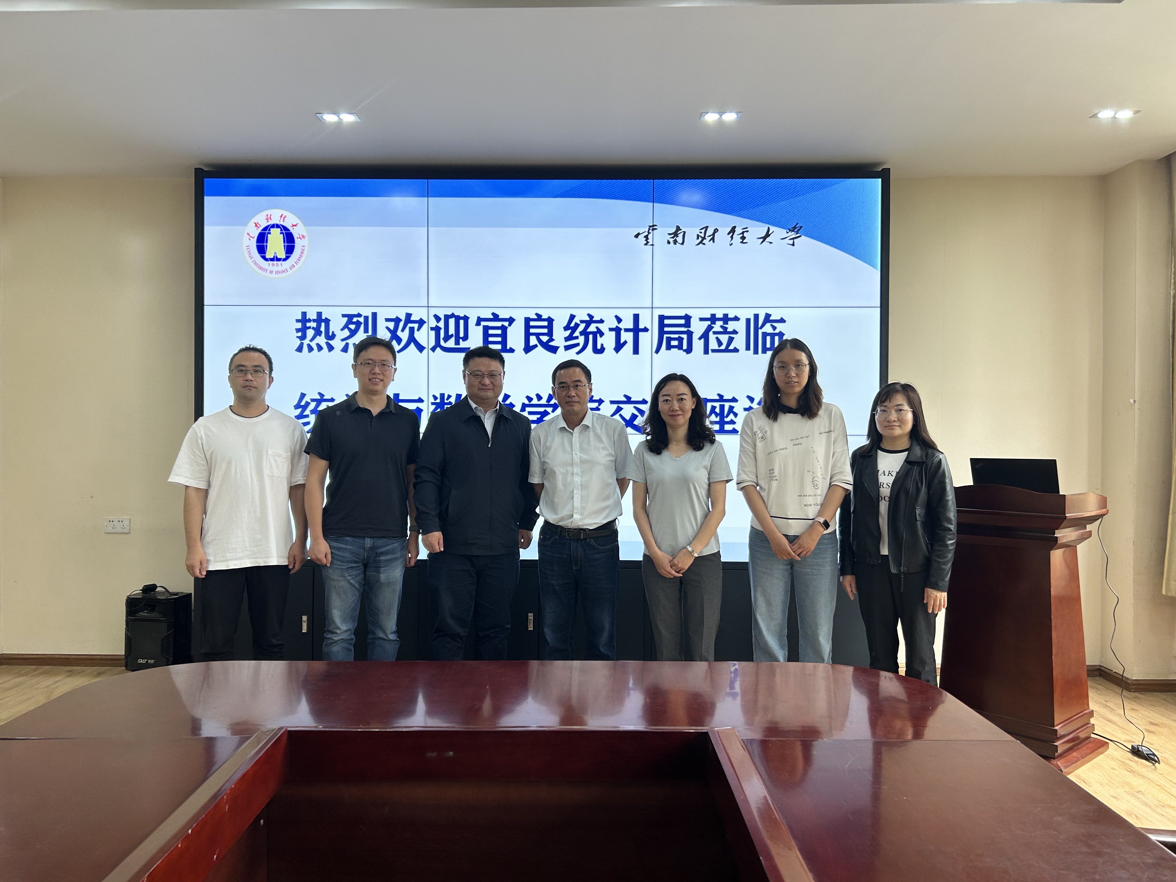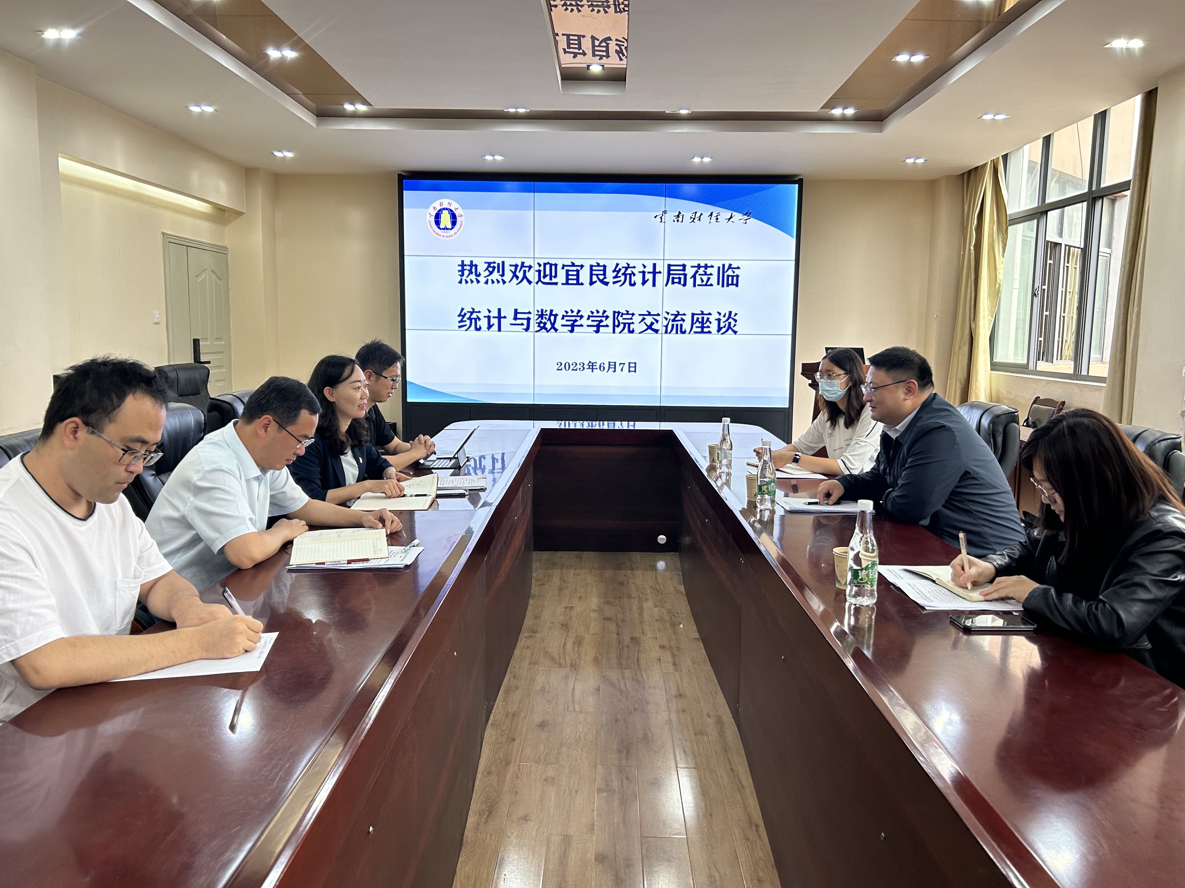 6月7日上午,宜良县统计局党组书记、党支部书记余可佳,党组成员、支部副书记、副局长李志莹,党组成员、副局长朱枚桦到统计与数学学院进行交流访问。学院党委书记杨媛妮、院长陈飞、党委副书记石晓晶、副院长张宇参加座谈交流。