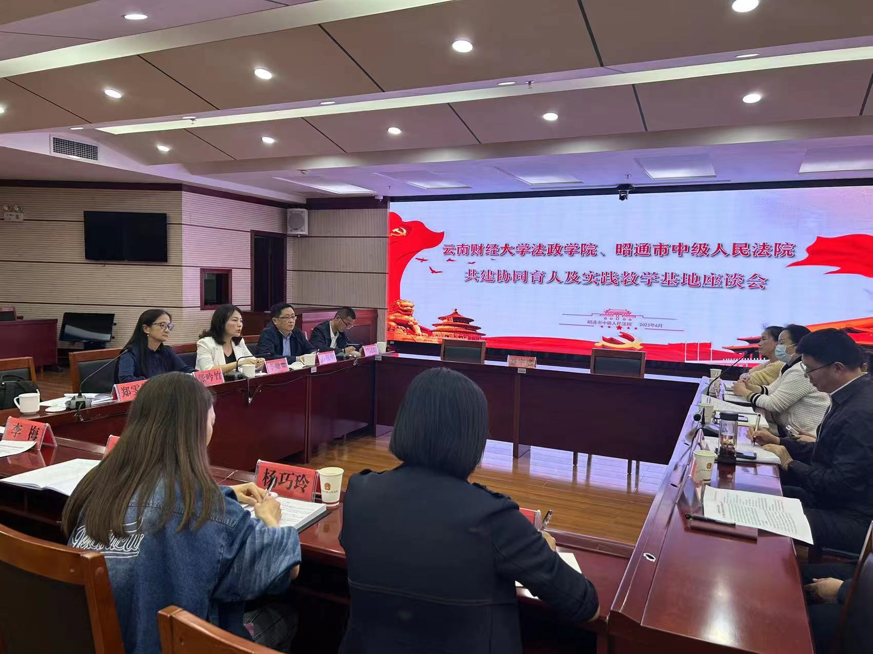 座谈会由昭通市中级人民法院政治部主任黄佑春主持。李姗姗对昭通市两级法院长期以来对学院人才培养、改革发展等方面给予的支持表示由衷的感谢,同时介绍了法政学院的基本情况,希望与昭通市两级法院在协同育人、学生实习实践和就业等方面深化合作。