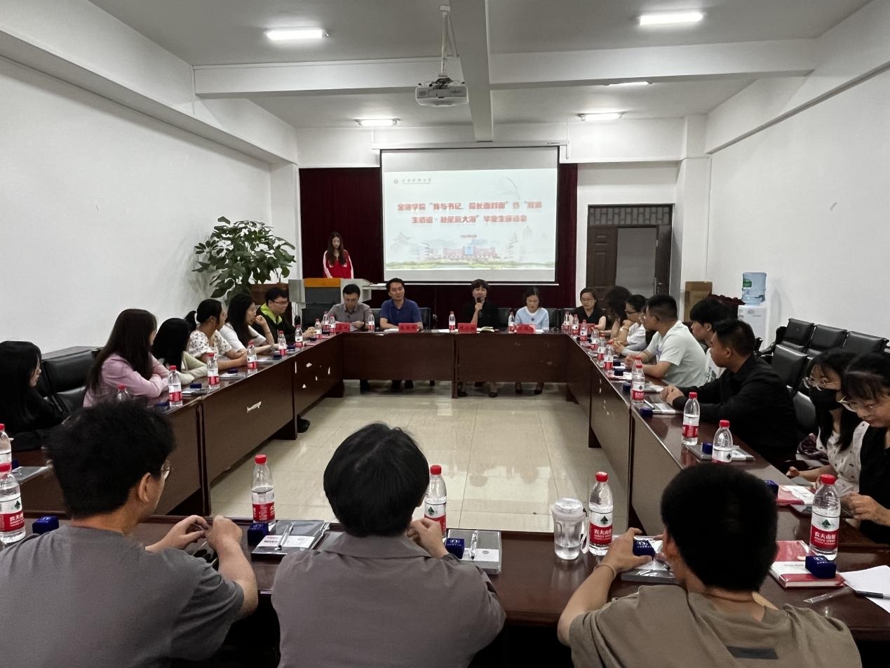 6月27日上午,金融学院举办了主题为“我与书记、院长面对面”暨“叙师生情谊·赴星辰大海”毕业生座谈会。座谈会由学院党委书记胡小珊主持,学院党政领导班子、院团委书记与24名本研毕业生参加。