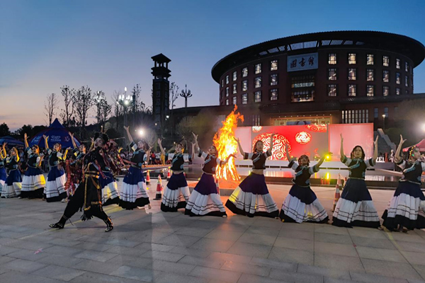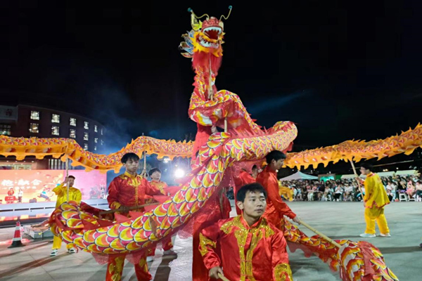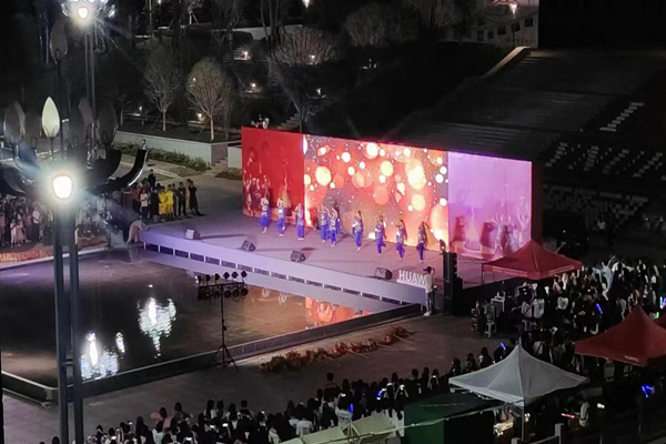 白族舞蹈《霸王鞭》灵动欢快,彝族舞蹈《火祭》、佤族舞蹈《司里岚-叶那》神秘热情,江南古风舞蹈《又见江南雨》、傣族舞蹈《婆娑丽影》柔美多姿,创新改编的民族现代舞《青蛇》、《魅•妩》动感十足,合唱《不要怕》、《向阳而生》、改编版云南山歌串烧嘹亮真挚,一个个充满了力量感和艺术感的节目引来观众阵阵欢呼,舞龙舞狮节目更是把此次活动的气氛推向又一个高潮,节目表演完后,大家手拉手进行围火跳,载歌载舞,携手共进,像石榴籽一样紧紧团结在一起。