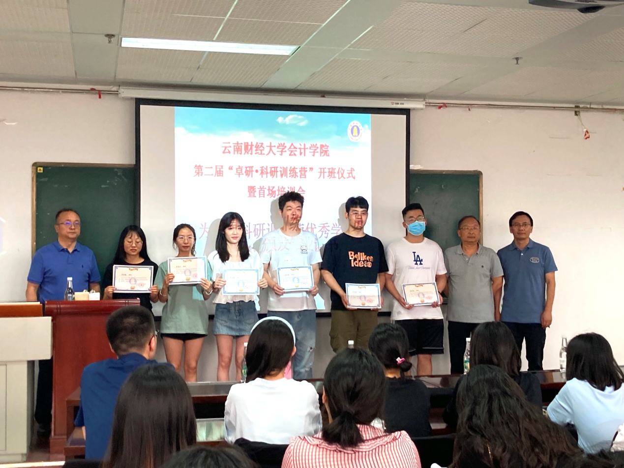 陈永飞从“机遇”“奋斗”和“坚持”等三个方面向训练营同学提出希望,他总结了会计学院近年来发展所取得的成就和下一步重点建设工作,希望全体参训学员把握住此次机遇,认真参加训练,不断探索理论和实践研究创新思维,为后续的研究工作打好基础。李丽忠主持开班仪式并宣布第二期“卓研•科研训练营”开班。陈永飞、纳超洪、吴昊旻为第一期“卓研•科研训练营”中取得优异成绩的同学颁发荣誉证书,并鼓励同学们在今后的学习中仍要保持学习,提高自身的科研能力。
