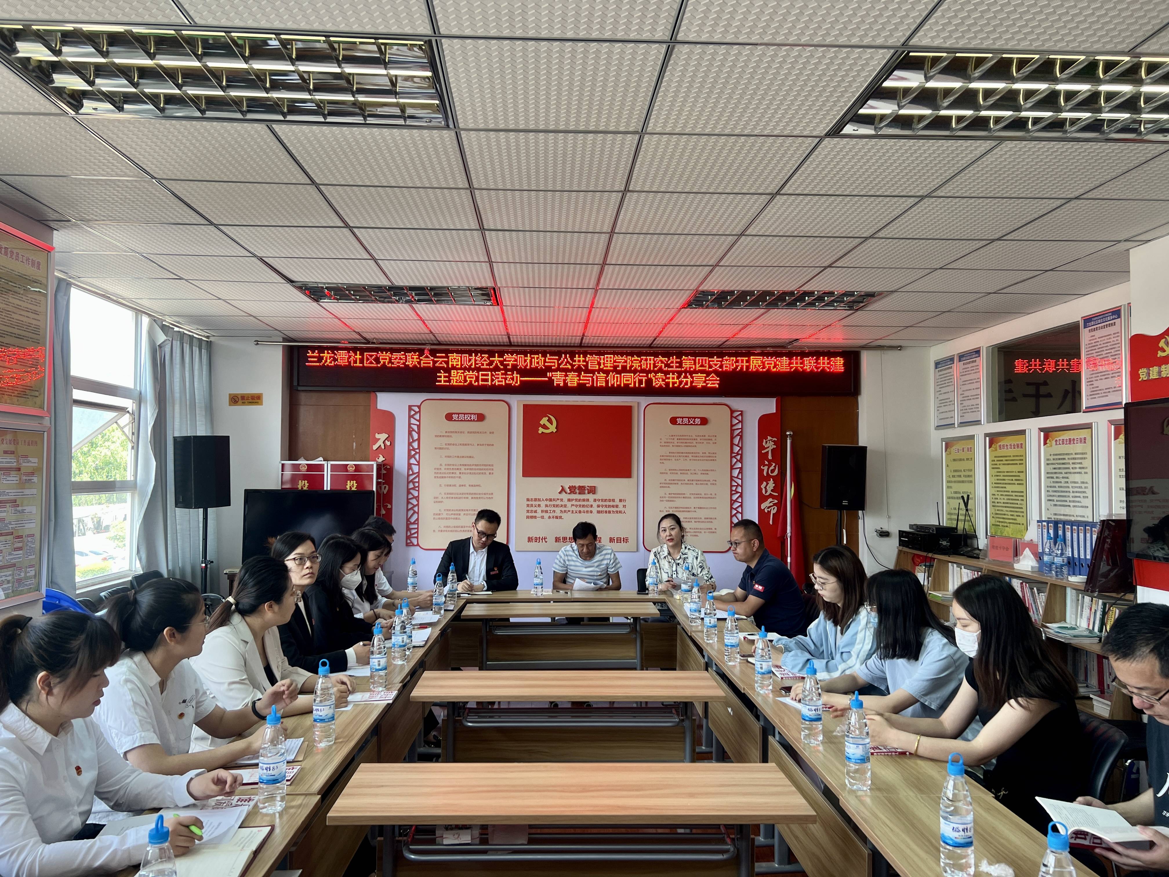为深入学习贯彻党的二十大精神,坚持以习近平新时代中国特色社会主义思想为指导,充分发挥党组织的政治功能、组织功能, 4月19日,财政与公共管理学院研究生党支部联合兰龙潭社区党委开展“党建联建共建”签约仪式暨《谁是最可爱的人》读书分享会主题党日活动。会议由兰龙潭社区党委组织委员于雁主持,学院研究生党支部党员、兰龙潭社区党委所属18个党支部书记参加会议。