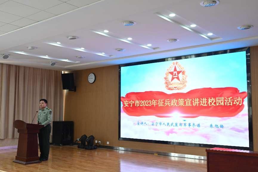 朱旭扬对安宁市2023年征兵政策作现场宣讲和答疑。